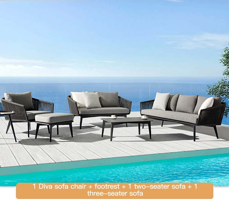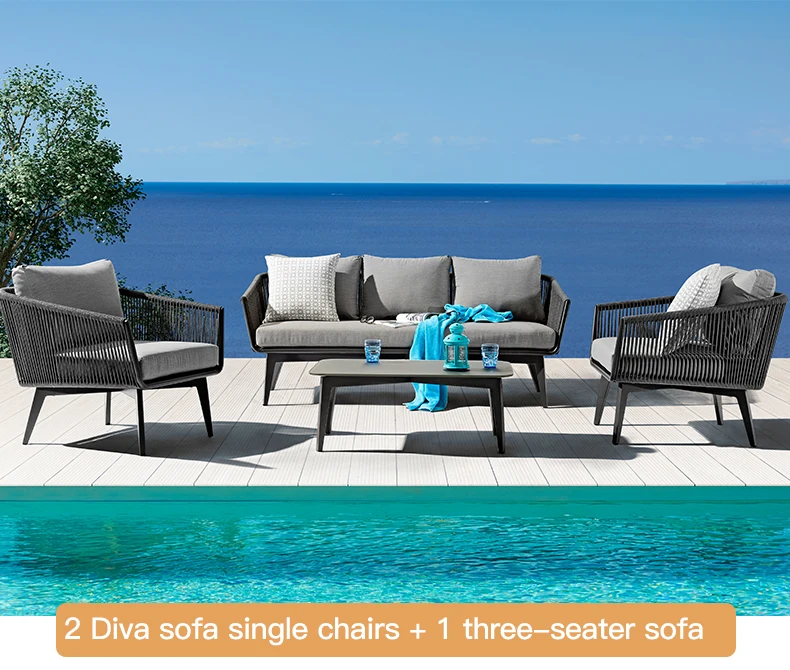 High Grade Outdoor Sofa For 3 People Rest Chairs For Dining Garden Tables Single Bed Aluminum Alloy Rattan Waterproof Lounger