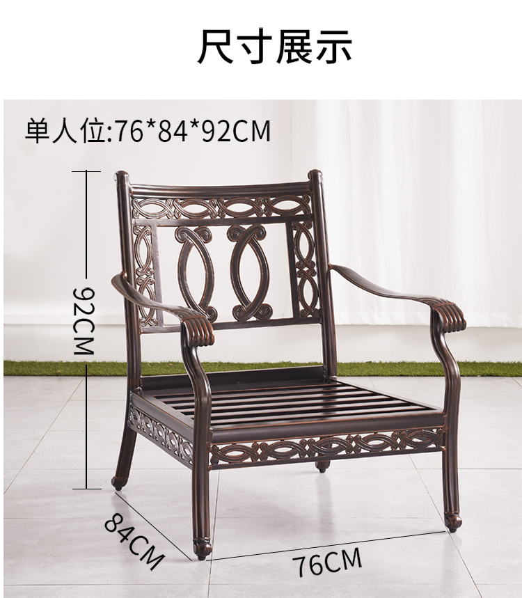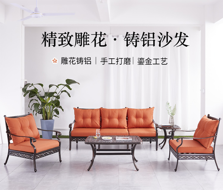 Ghế sofa nhôm đúc ngoài trời sáng tạo biệt thự sân trong phòng tắm nắng cổ điển khu vườn nhỏ ngoài trời kết hợp đồ nội thất thư giãn retro được thiết kế để tạo điểm nhấn cho khu vực sân vườn, ban công hoặc không gian ngoài trời.