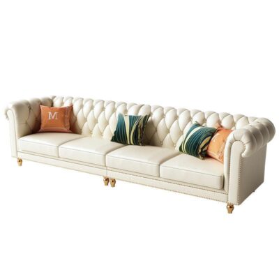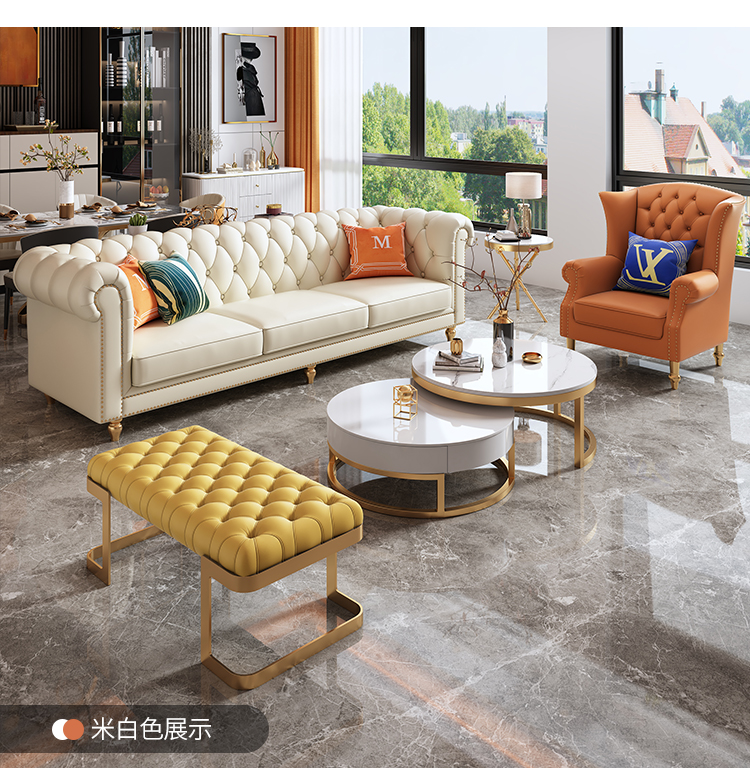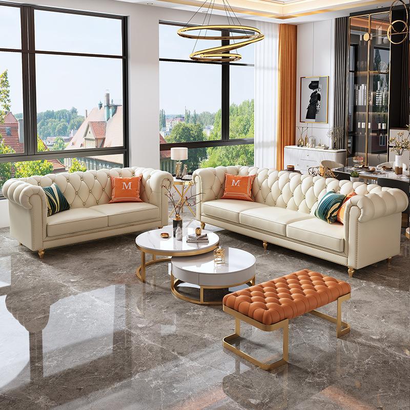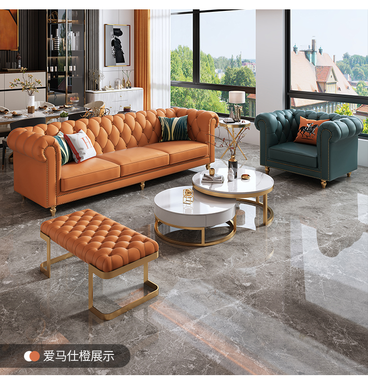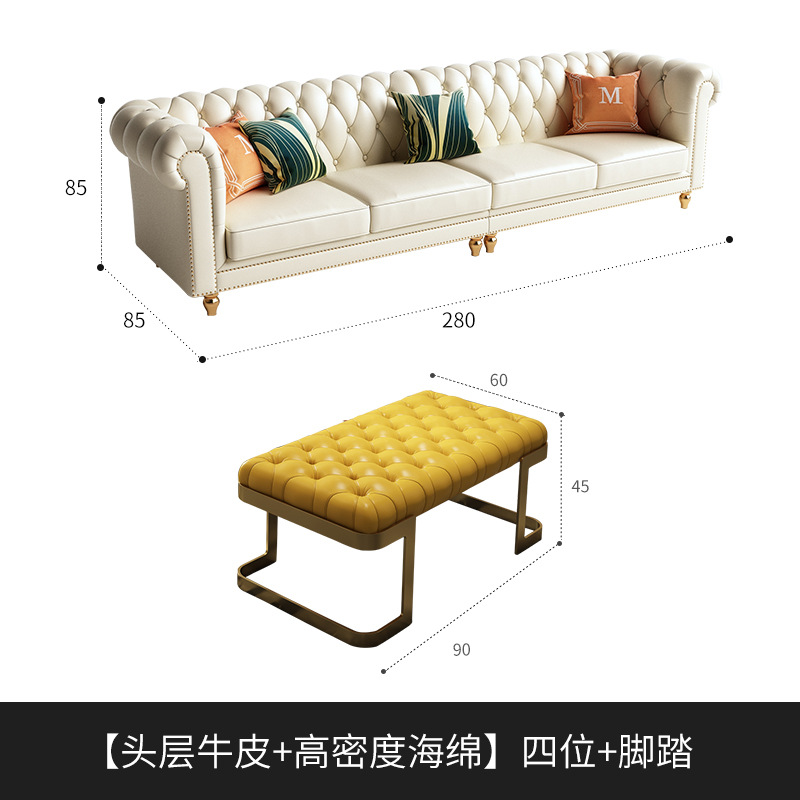 Ghế sofa sang trọng nhẹ của Mỹ phòng khách hàng thẳng sảnh ngang sofa da bò bốn người kết hợp nội thất căn hộ lớn và nhỏ