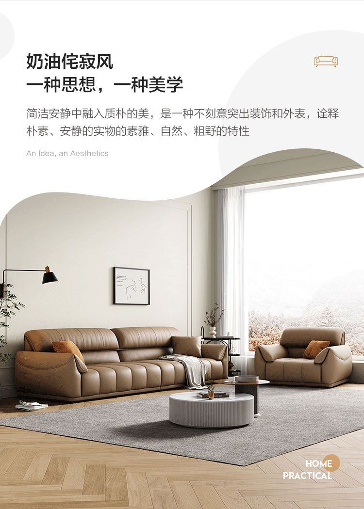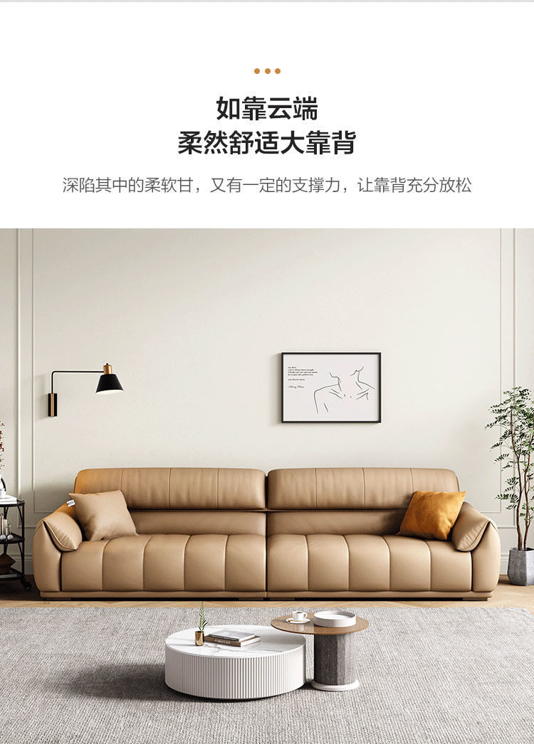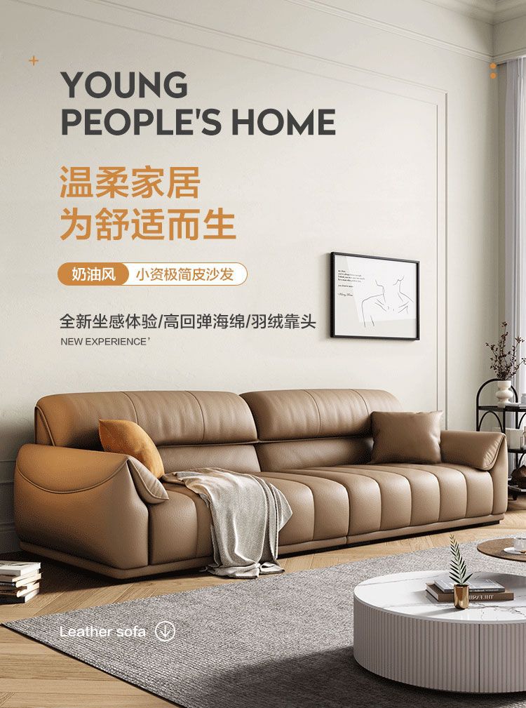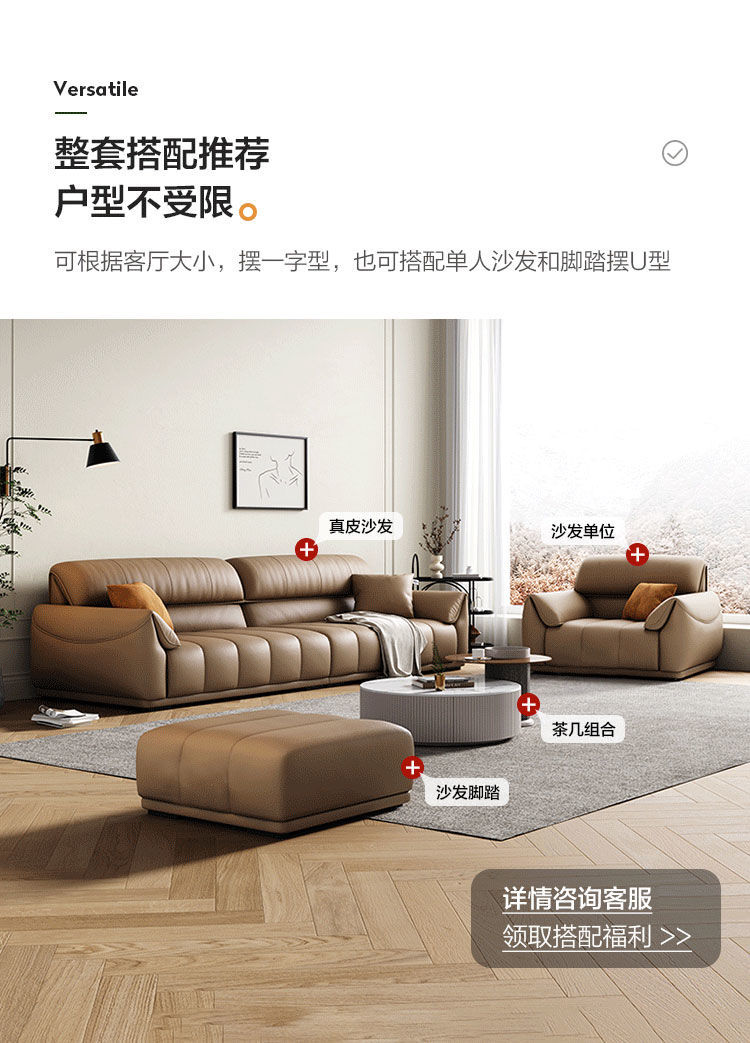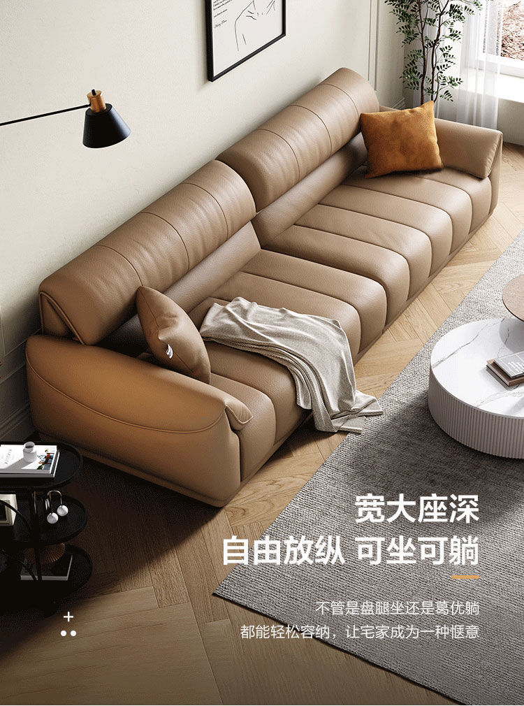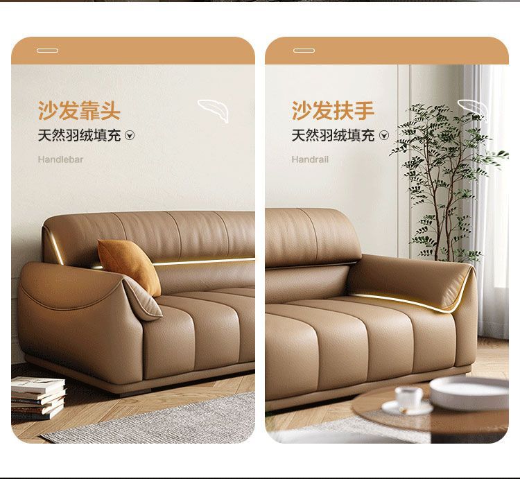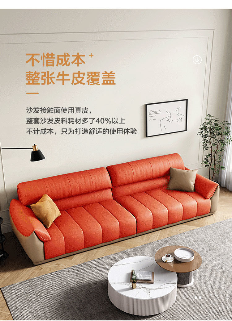 Ghế sofa sang trọng nhẹ đầu lớp da bò phòng khách căn hộ nhỏ Ý Bắc Âu hàng thẳng phong cách da nghệ thuật kết hợp sofa da