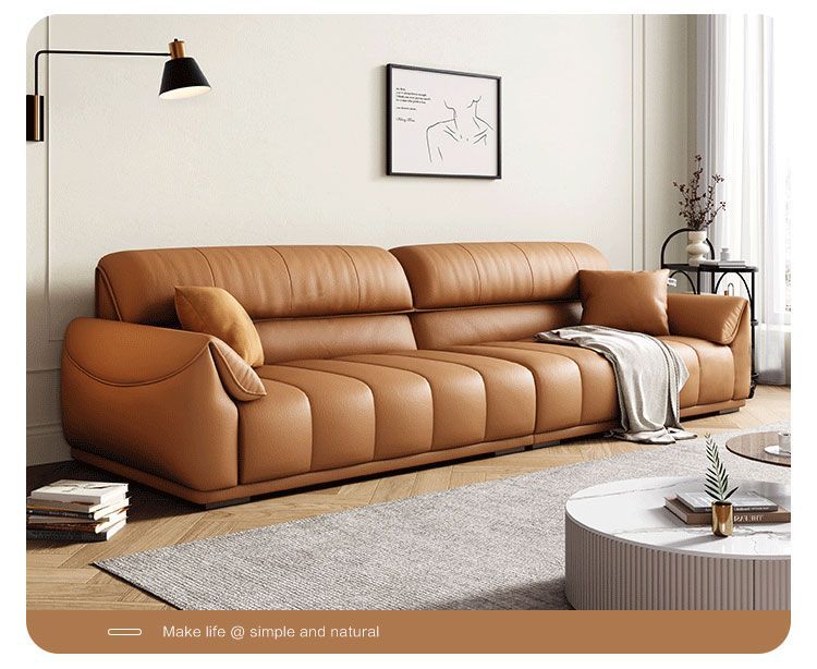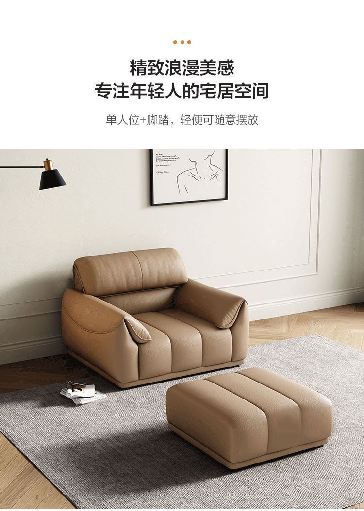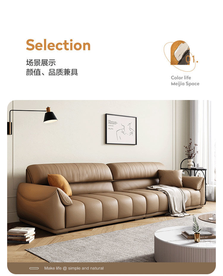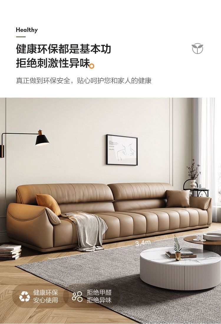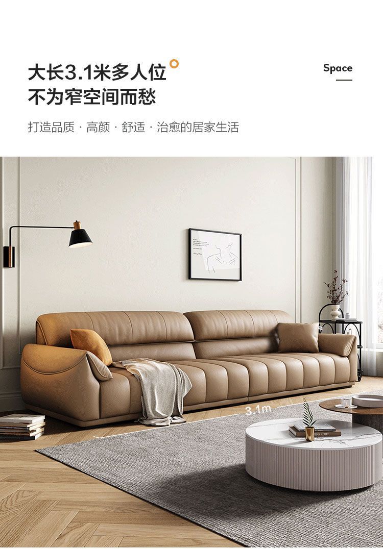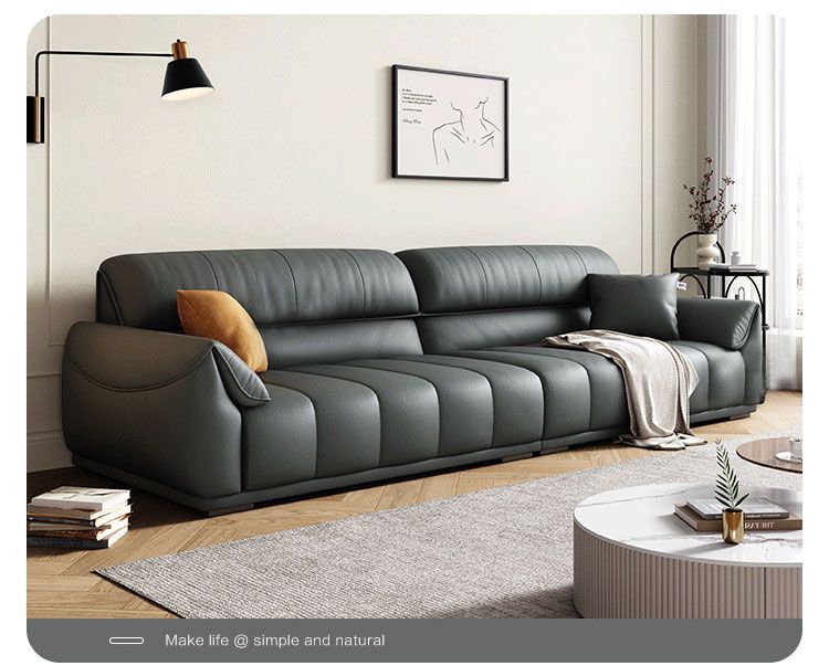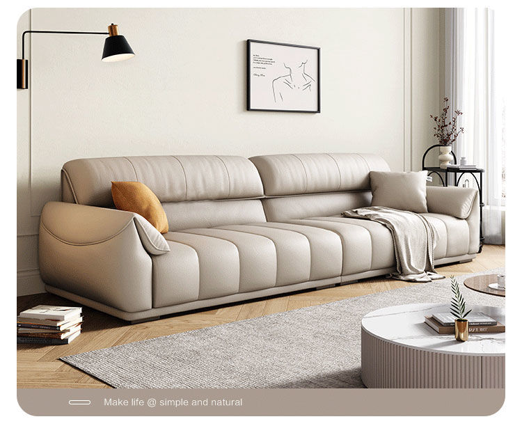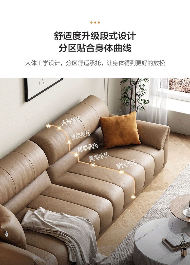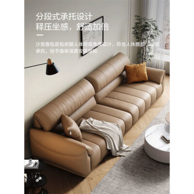 Ghế sofa sang trọng nhẹ đầu lớp da bò phòng khách căn hộ nhỏ Ý Bắc Âu hàng thẳng phong cách da nghệ thuật kết hợp sofa da