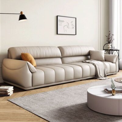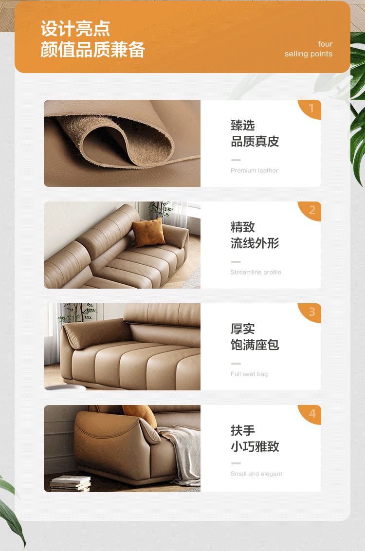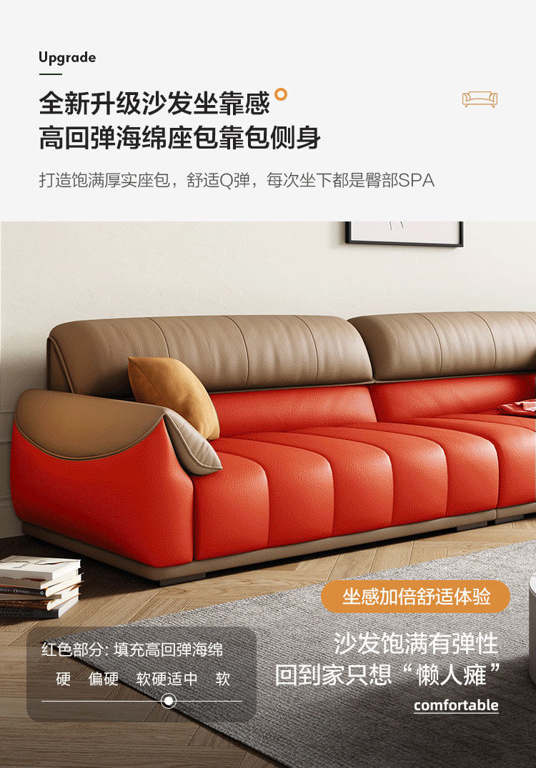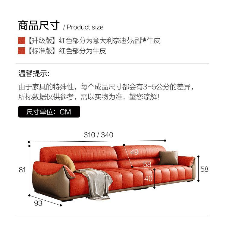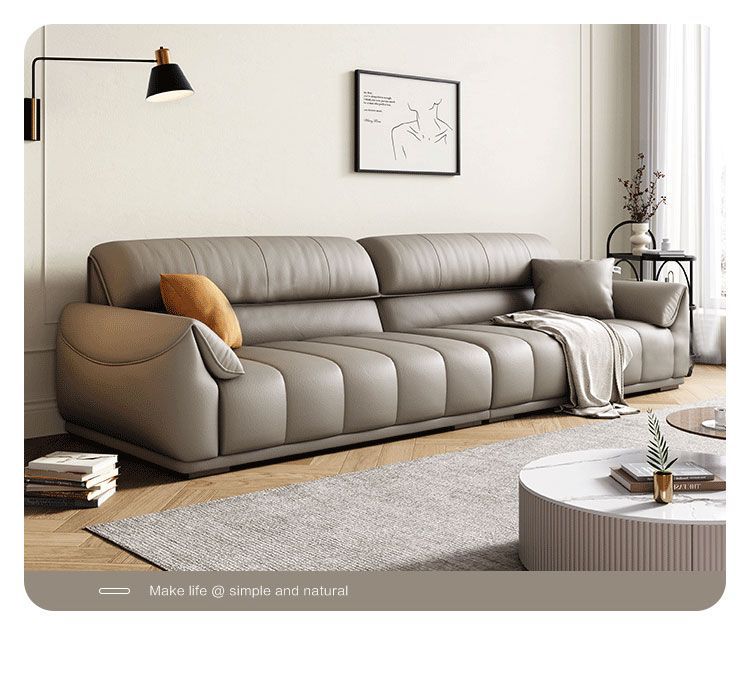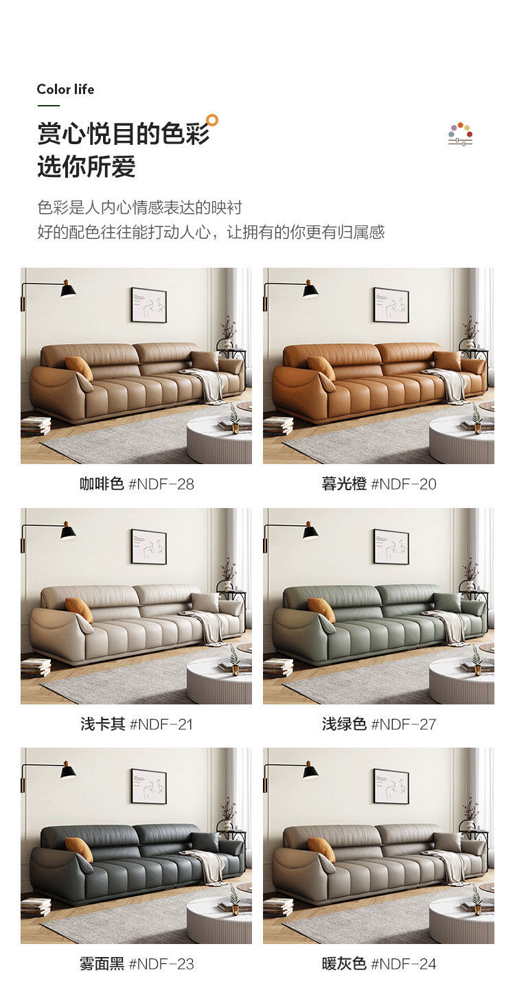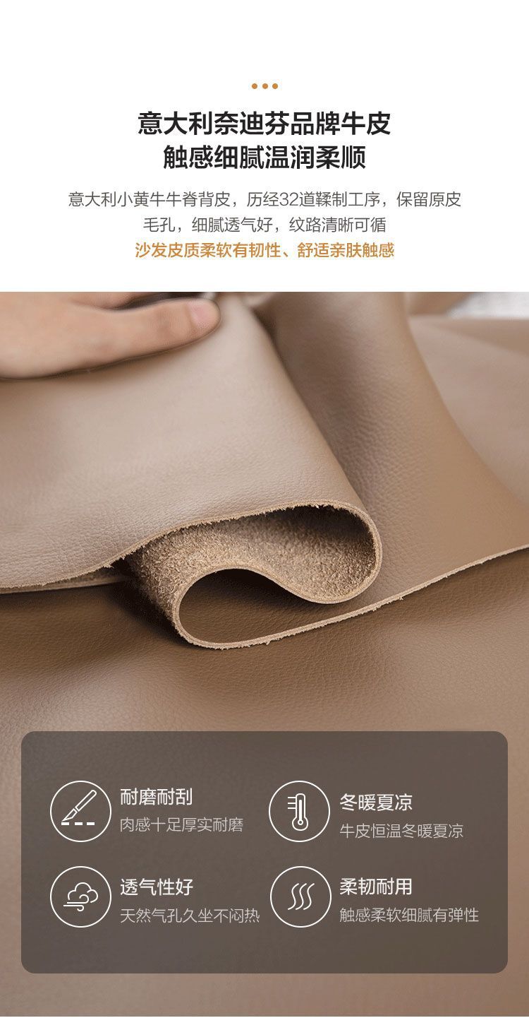 Ghế sofa sang trọng nhẹ đầu lớp da bò phòng khách căn hộ nhỏ Ý Bắc Âu hàng thẳng phong cách da nghệ thuật kết hợp sofa da