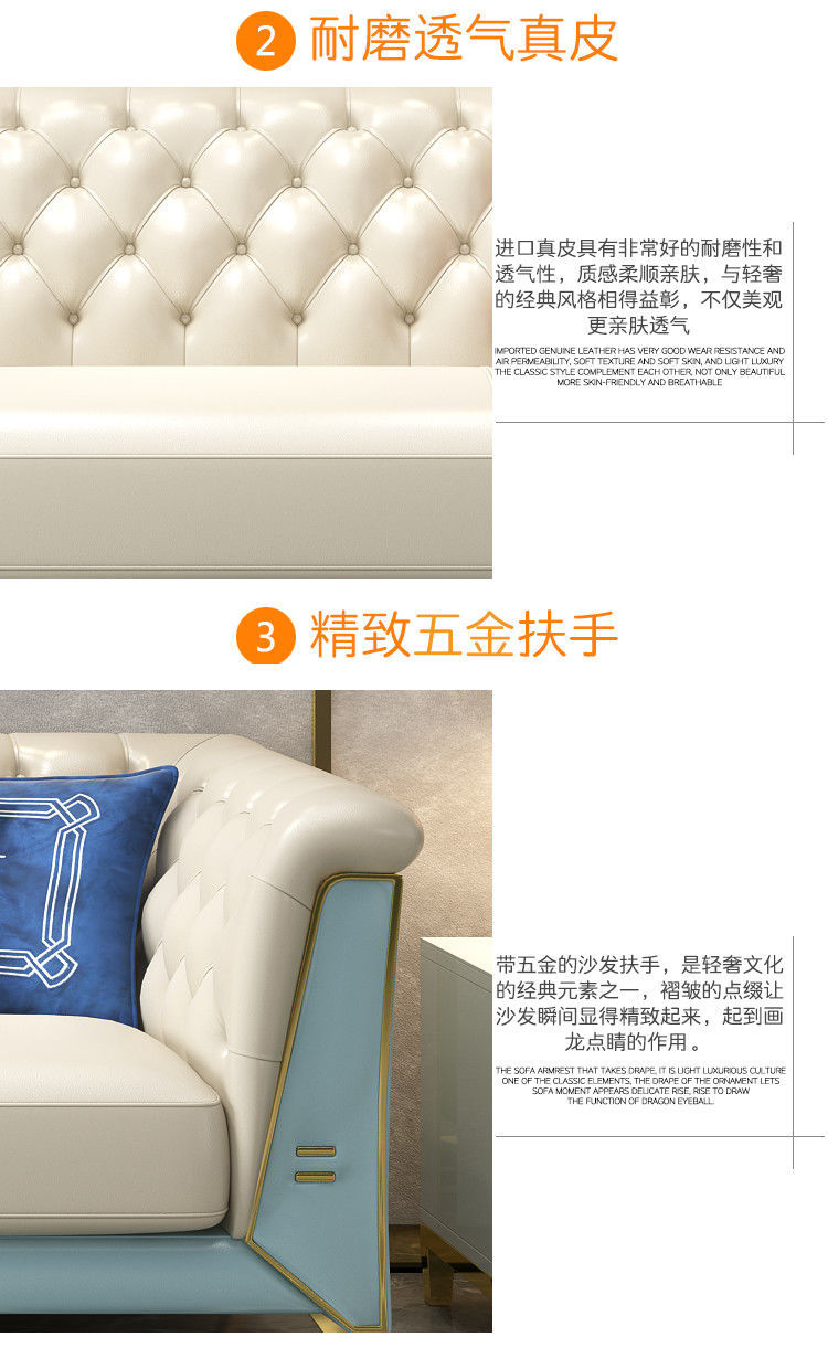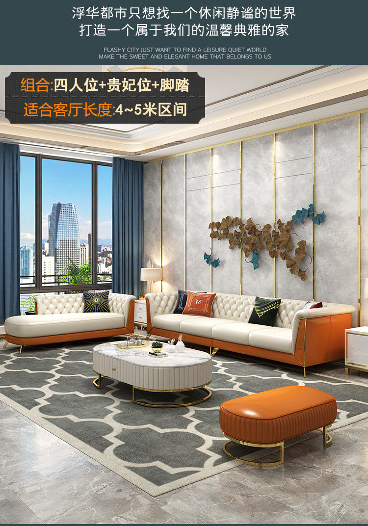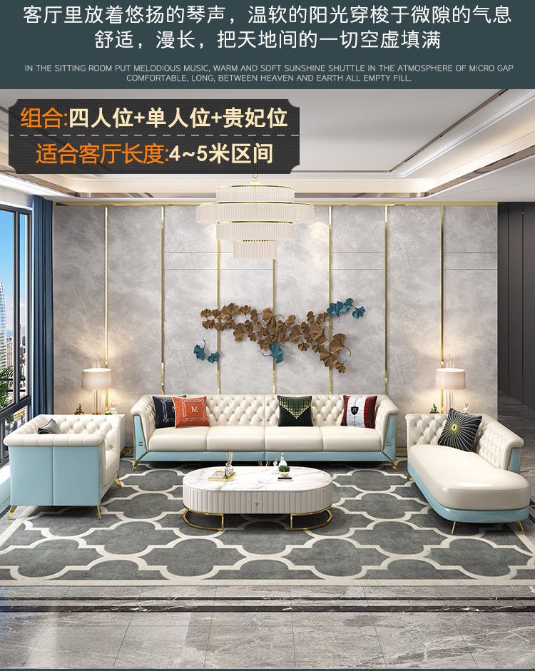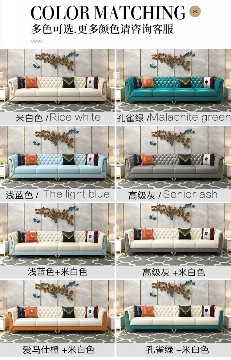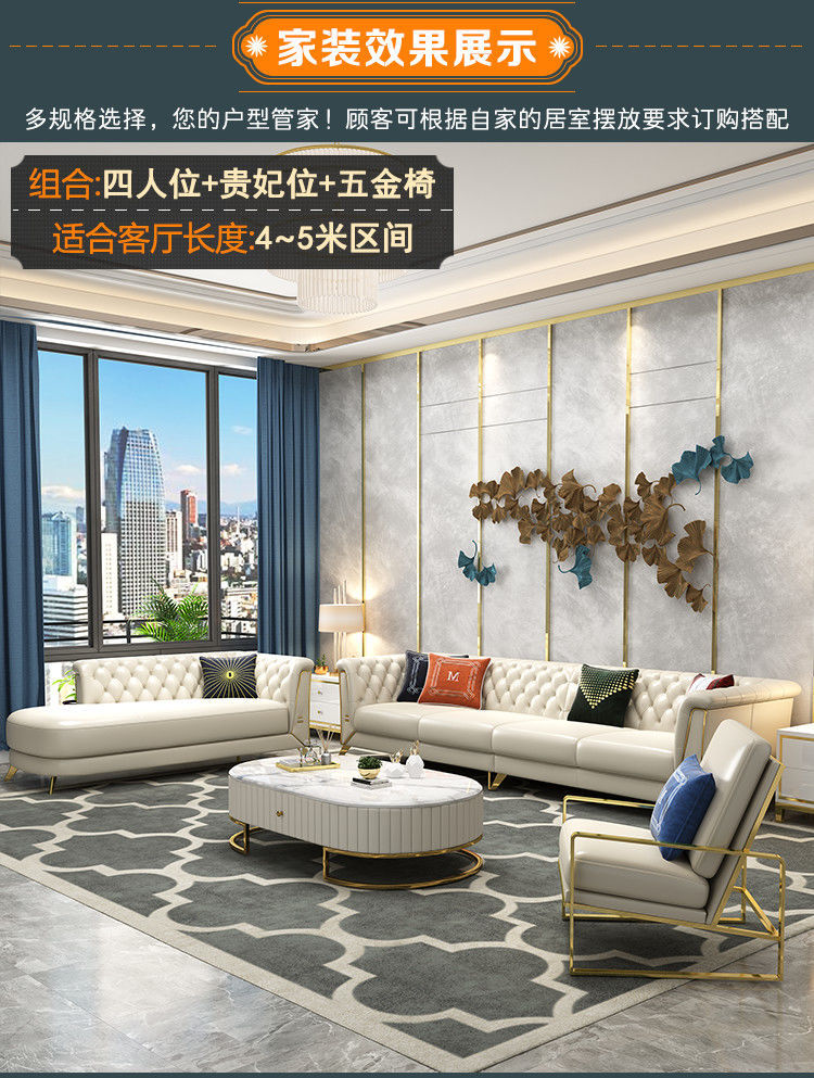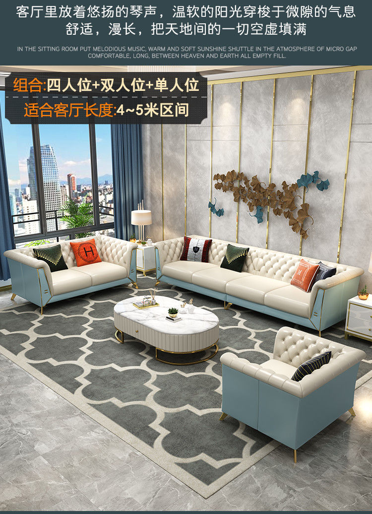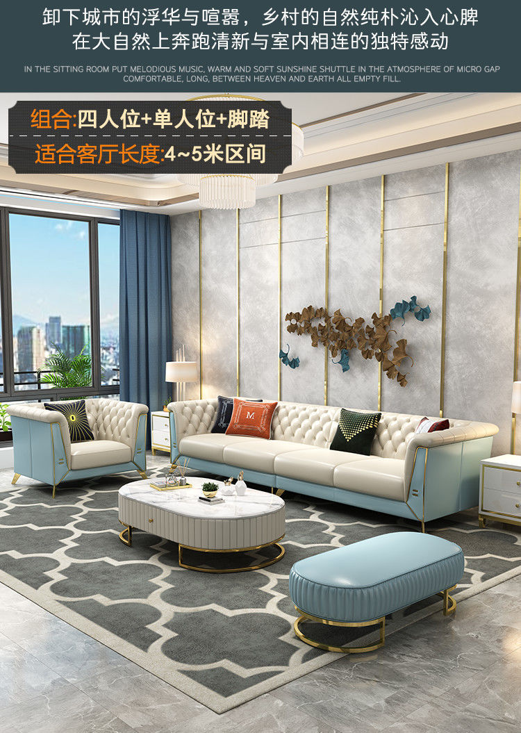 Ghế sofa sang trọng nhẹ kiểu Mỹ da bò lớp trên kích thước căn hộ 123 kết hợp ghế thẳng 4 chỗ hậu hiện đại