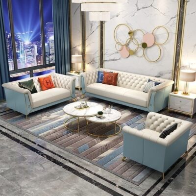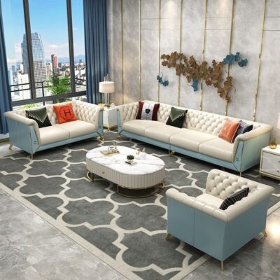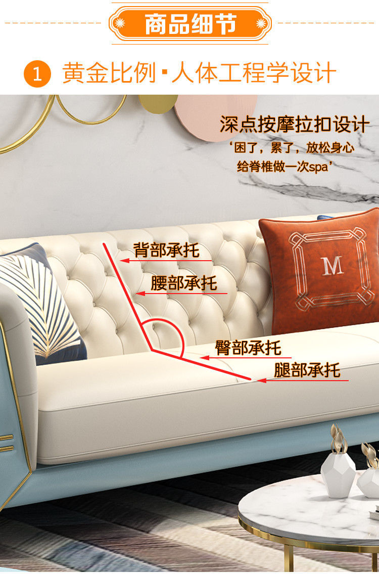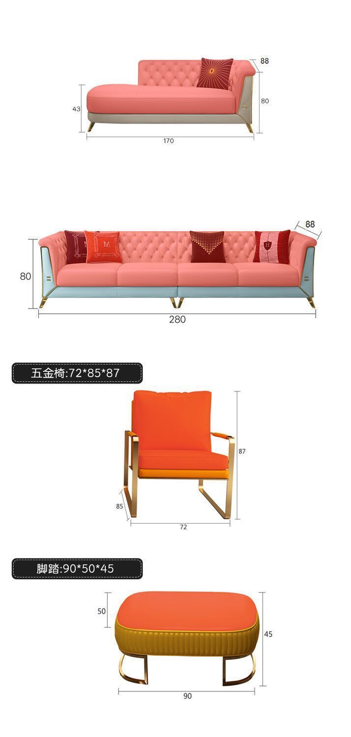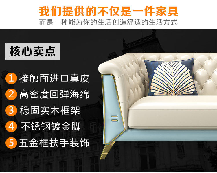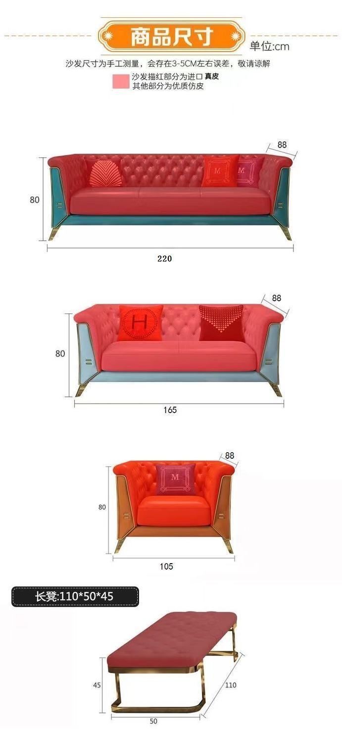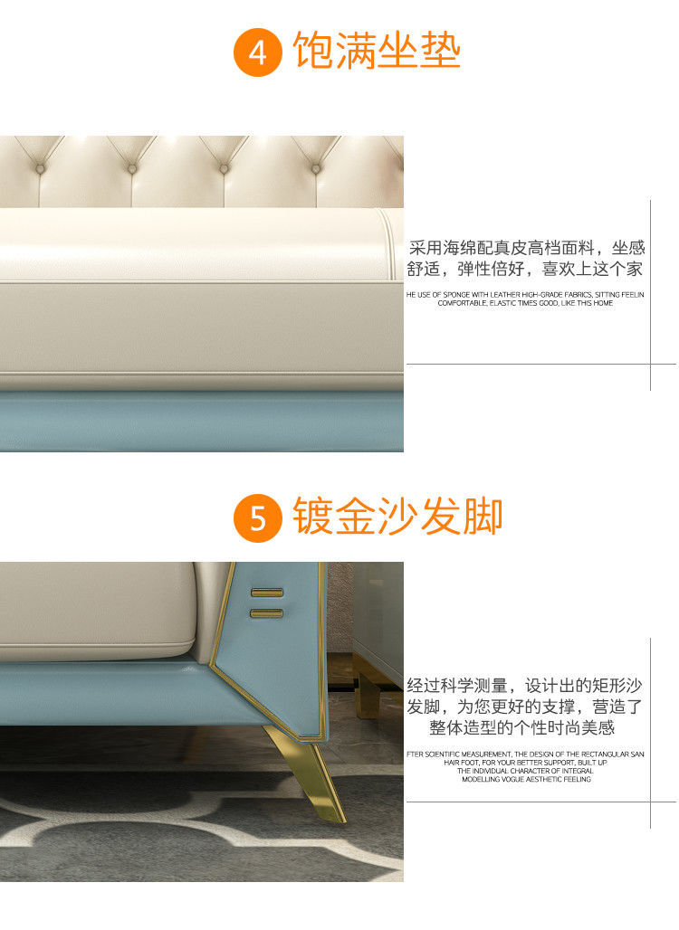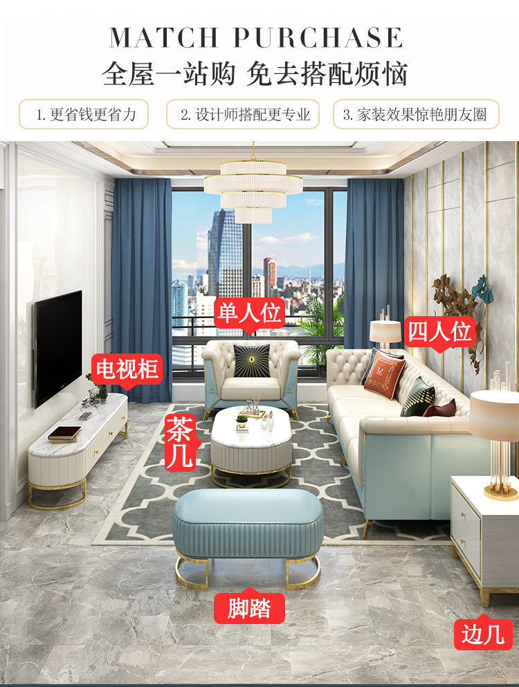 Ghế sofa sang trọng nhẹ kiểu Mỹ da bò lớp trên kích thước căn hộ 123 kết hợp ghế thẳng 4 chỗ hậu hiện đại