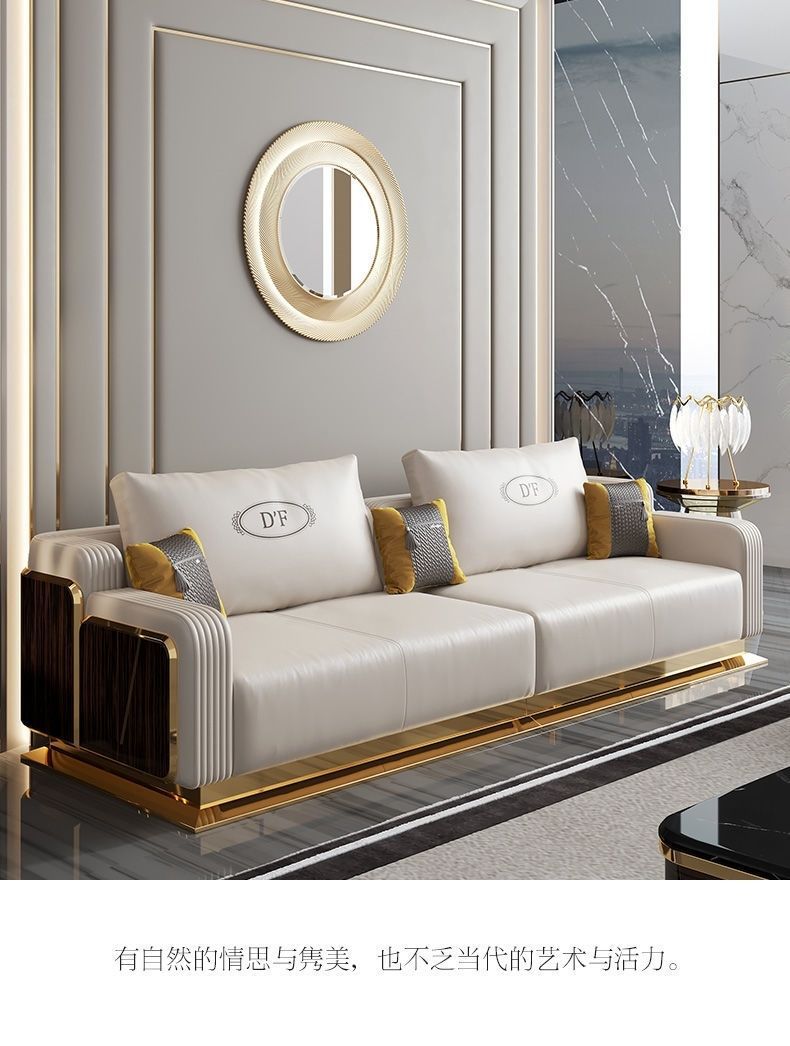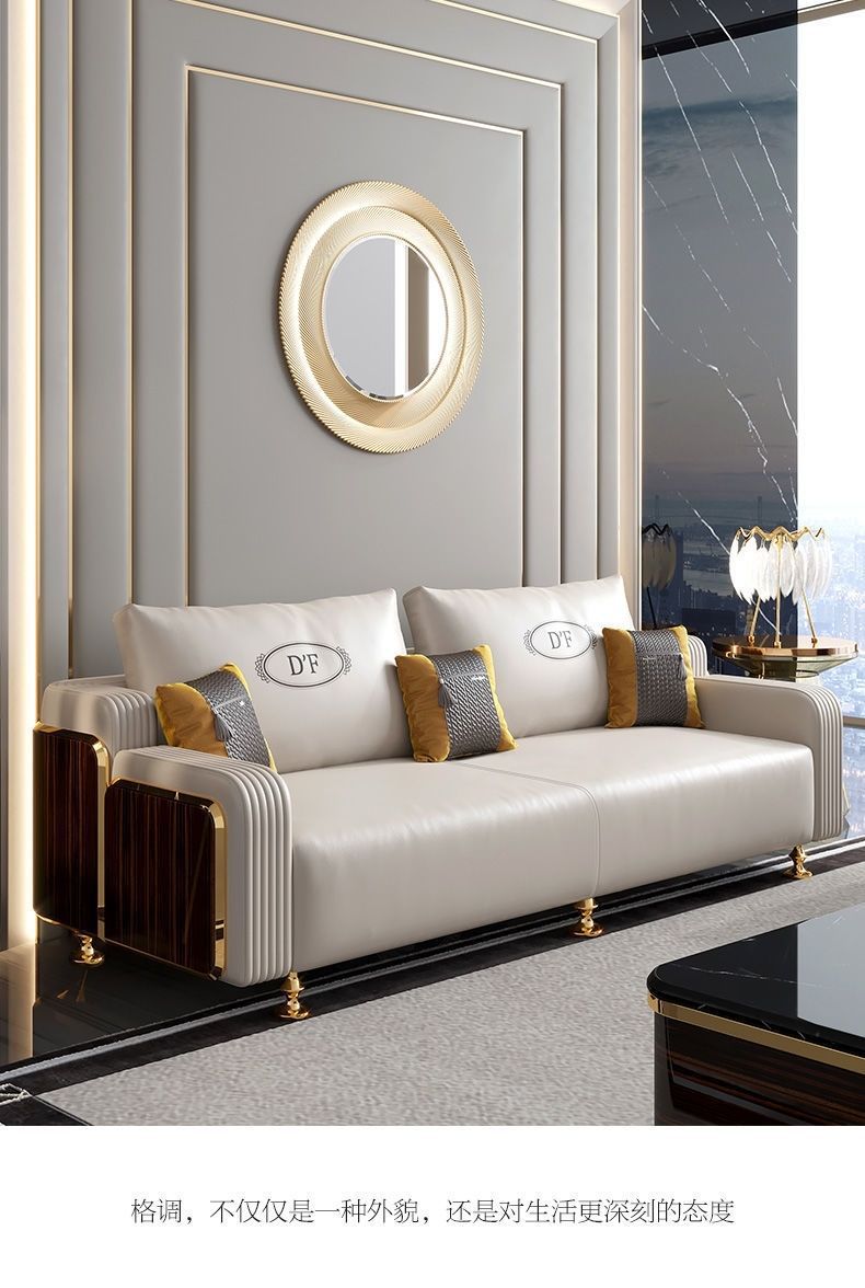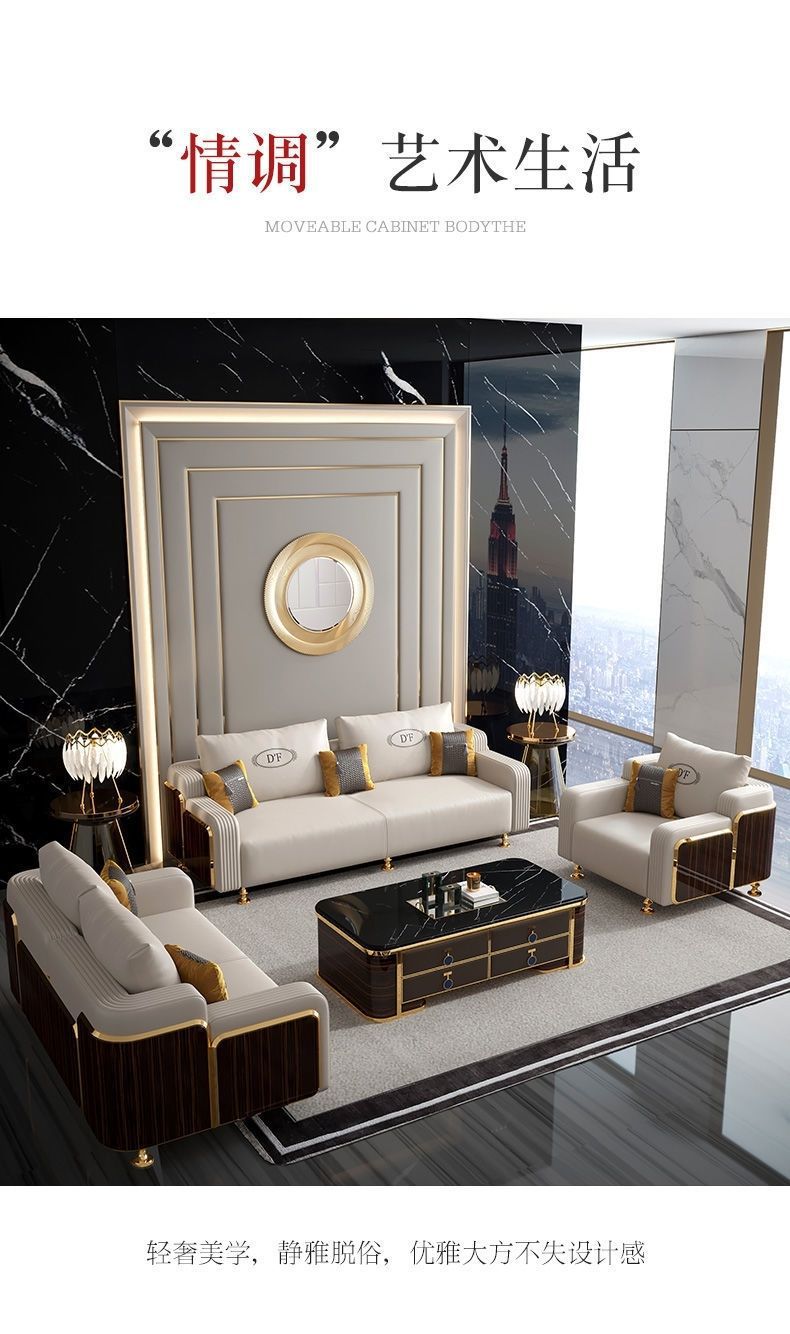 Ghế sofa sang trọng nhẹ kiểu Ý phòng khách căn hộ nhỏ biệt thự mẫu phòng hiện đại tối giản kết hợp ghế sofa gỗ nguyên khối