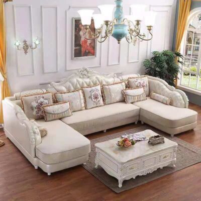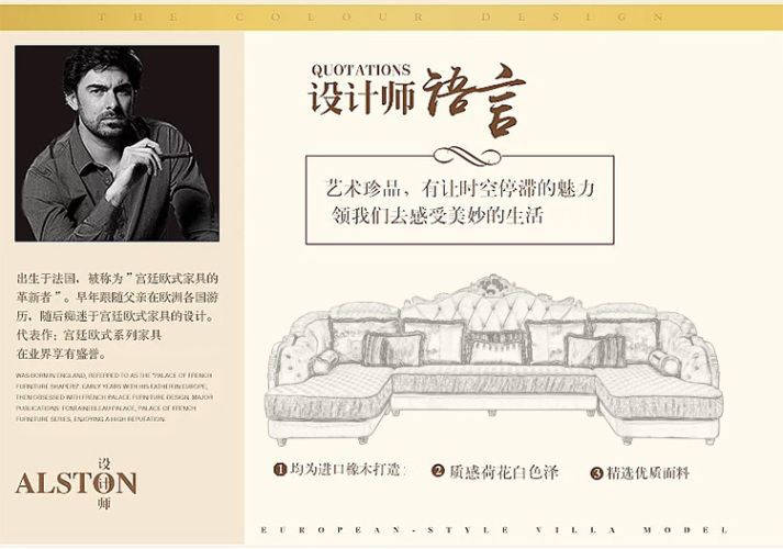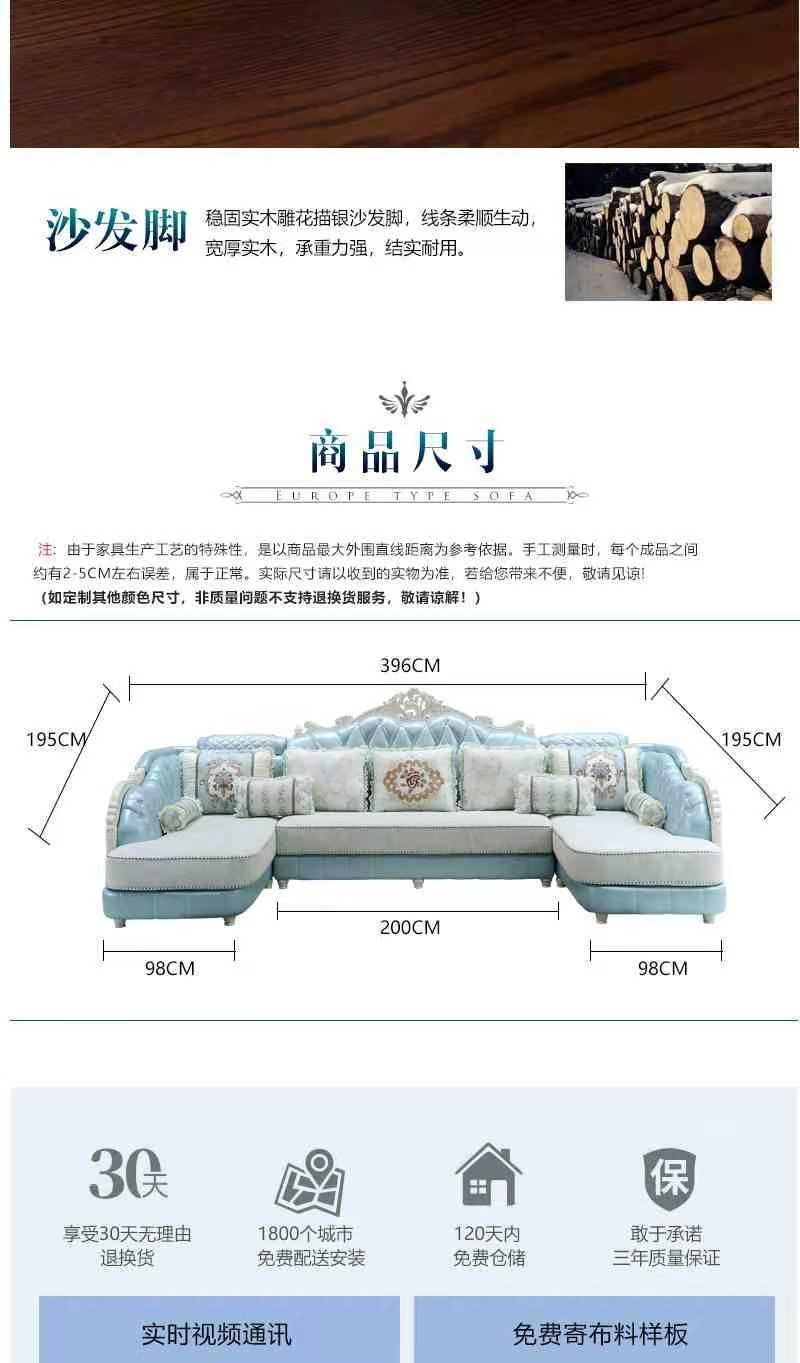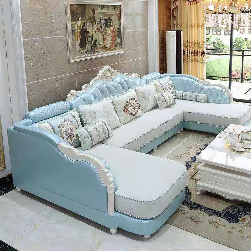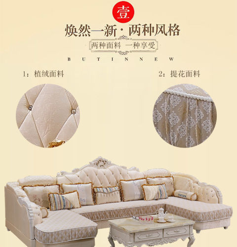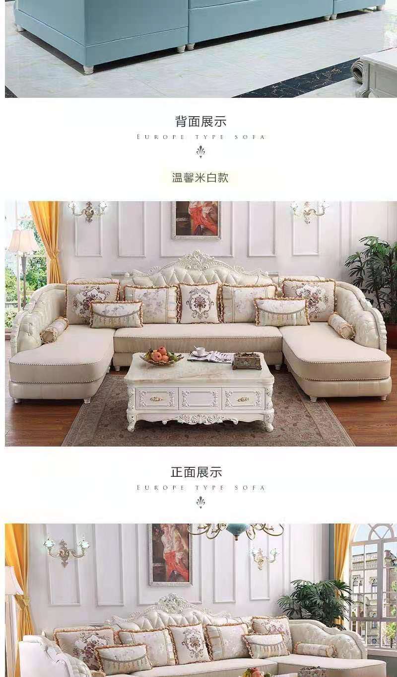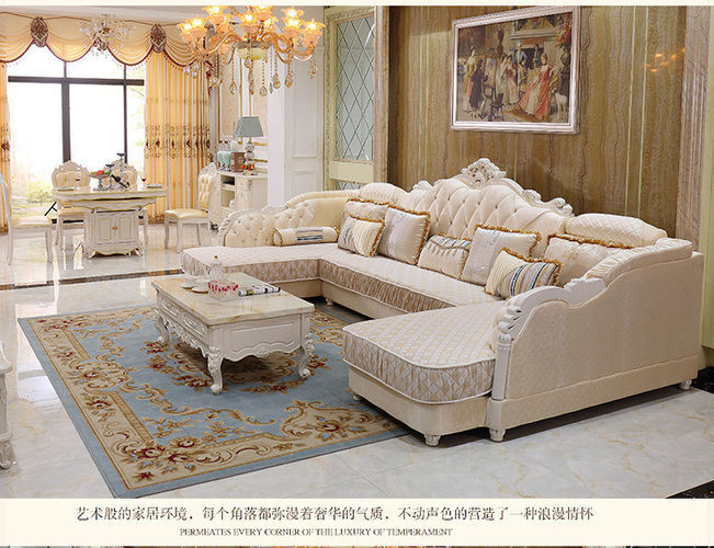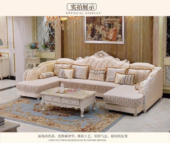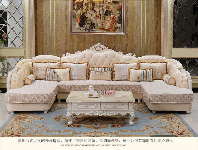 Ghế sofa theo phong cách châu Âu vải nghệ thuật phòng khách kết hợp hoàn chỉnh ghế sofa hình chữ U ghế dài đôi căn hộ lớn ghế sofa vải da gỗ chắc chắn
