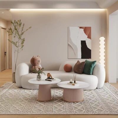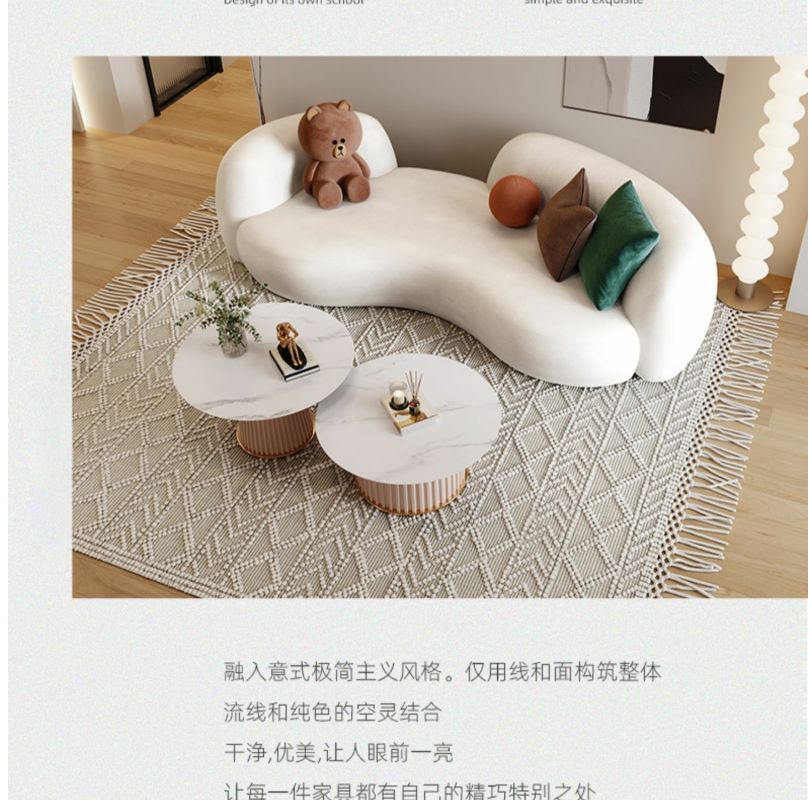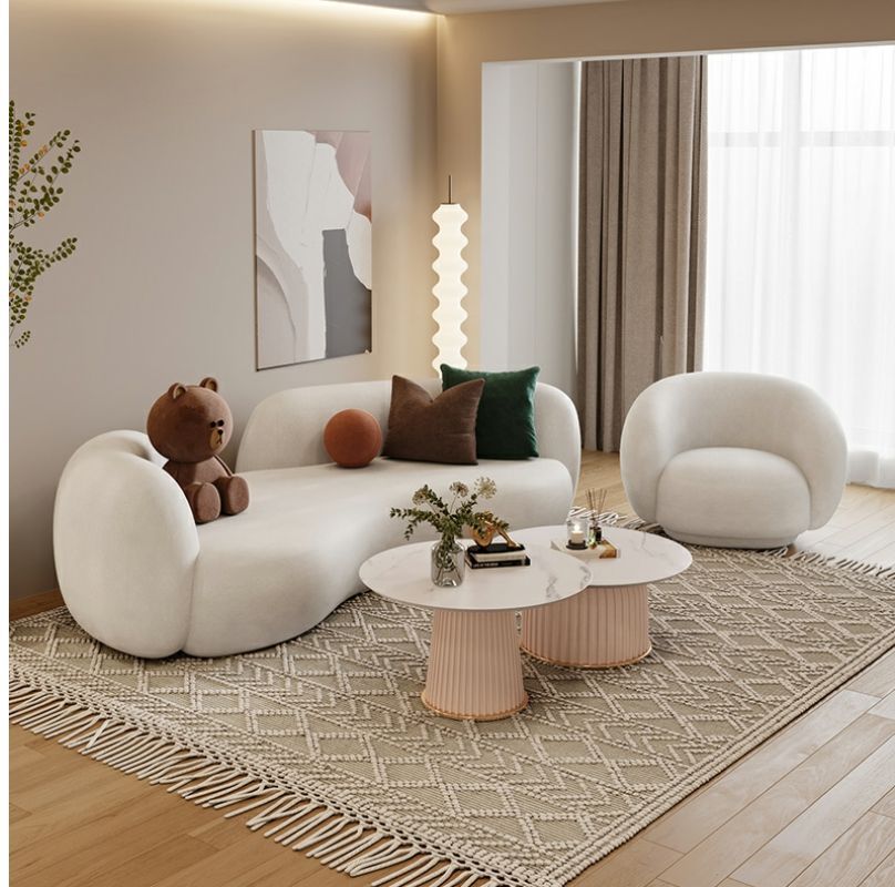 Ghế sofa vải căn hộ nhỏ thẩm mỹ viện khu vực nghỉ ngơi tiếp khách Phổ biến trên Internet kết hợp bàn cà phê hình cong đặc biệt
