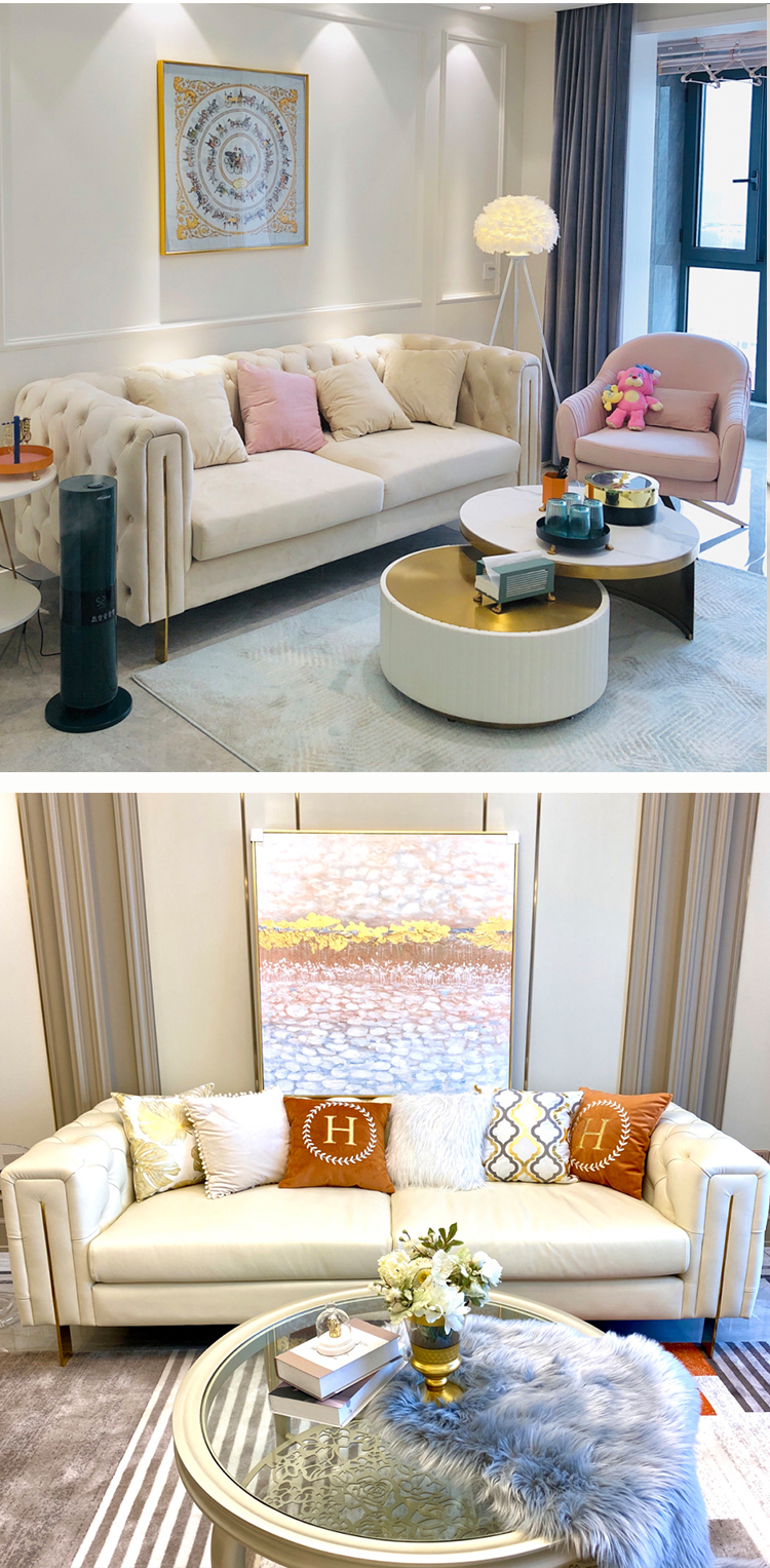 Ghế sofa vải da sang trọng màu sáng Mỹ phòng khách căn hộ nhỏ 123 kết hợp hiện đại tối giản sang trọng đồ nội thất màu đỏ thuần 27 độ