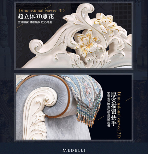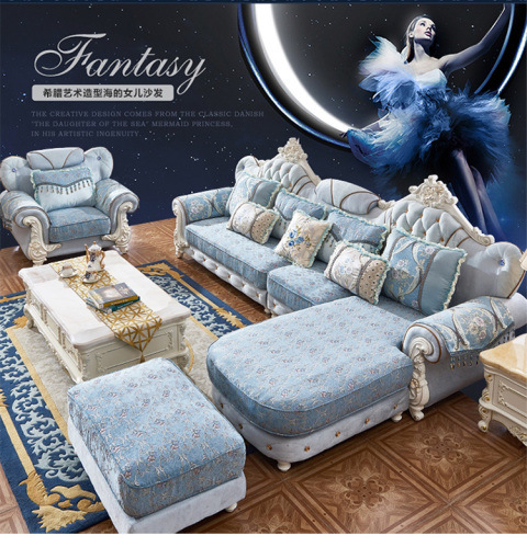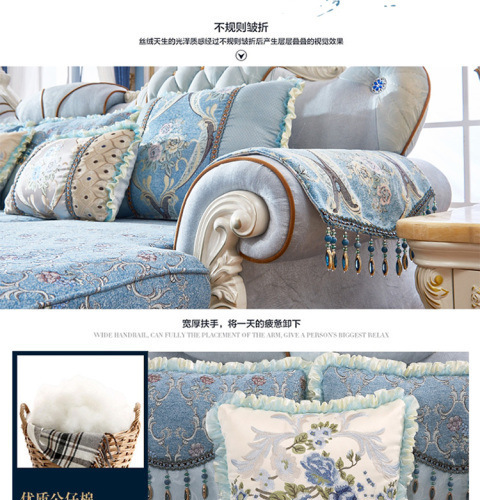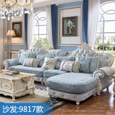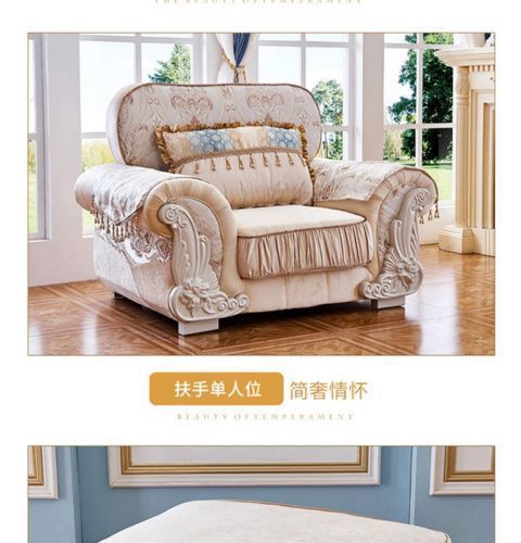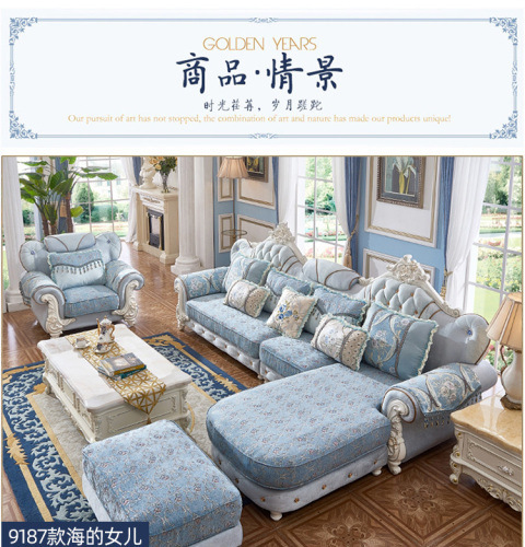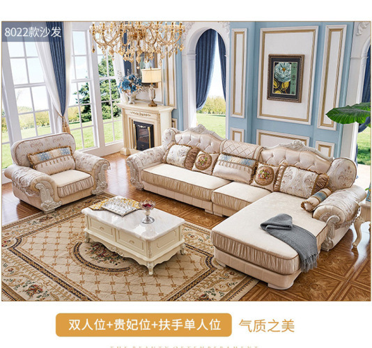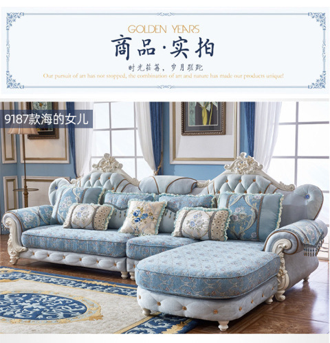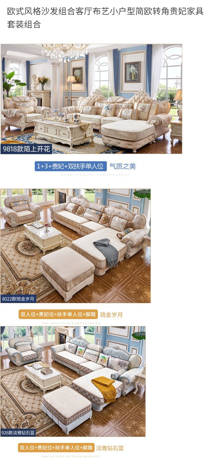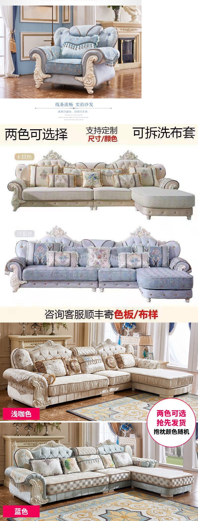 Ghế sofa vải phong cách châu Âu Gỗ nguyên khối cao cấp kiểu Mỹ kích thước căn hộ đơn giản Ghế dài góc châu Âu bộ bàn ghế trang trí sang trọng