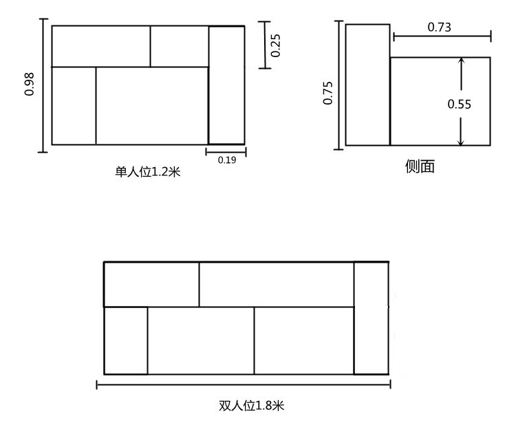 Bao nhiêu người ngồi: Ghế đơn 1,2 mét Ghế đôi 1,8 mét Ba chỗ 2,2 mét Bốn chỗ 2,7 mét Góc 2,7 * 2,5 Bàn đạp 75 * 75 Ba người lớn 2,4 mét Bốn người 3,2 mét