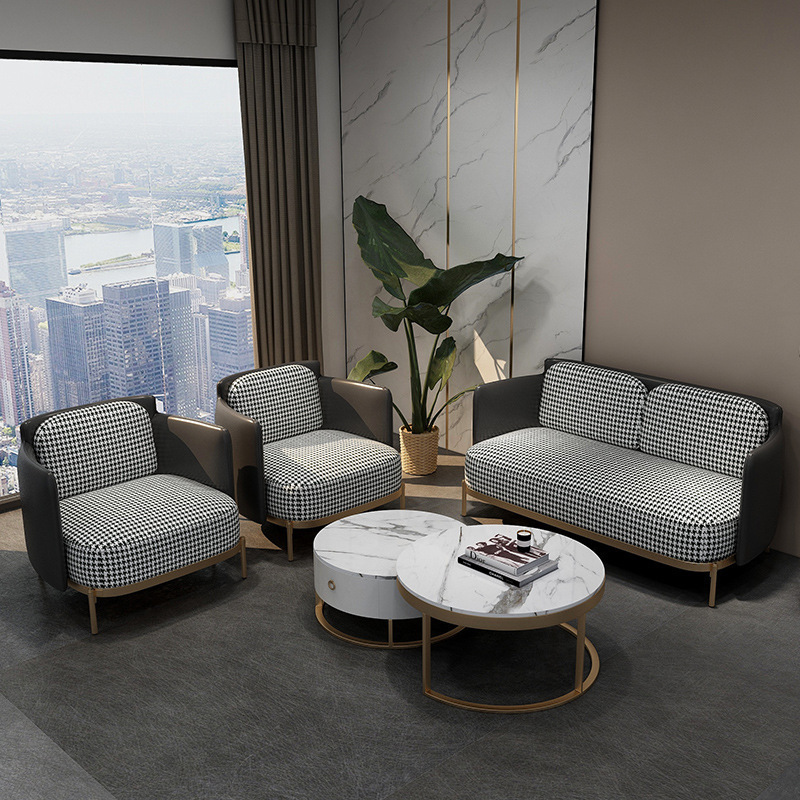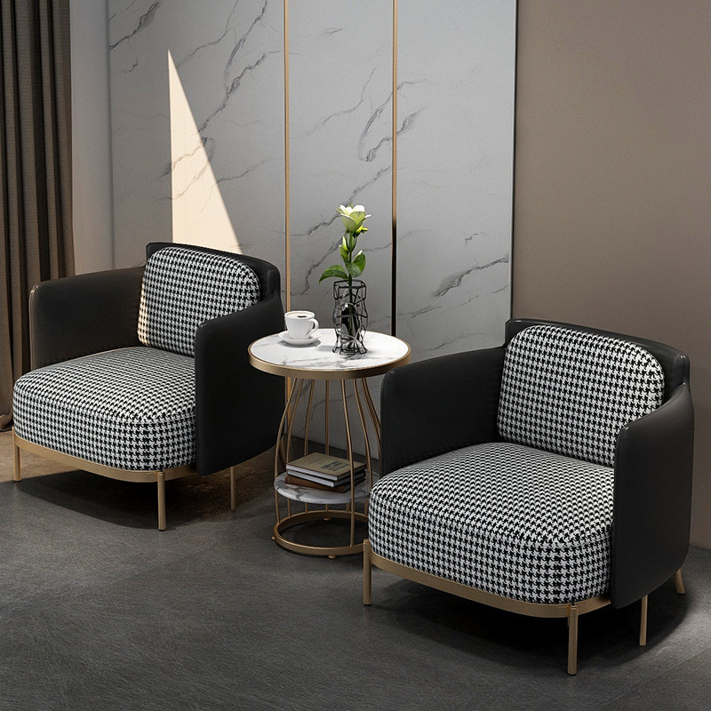 Ghế sofa văn phòng bằng da kiểu Bắc Âu đơn và đôi sofa nghệ thuật bằng vải houndstooth để bán sàn bộ phận đàm phán bàn tiếp tân kết hợp ghế