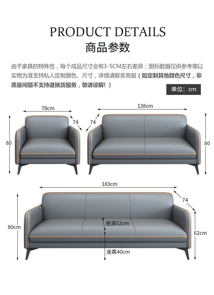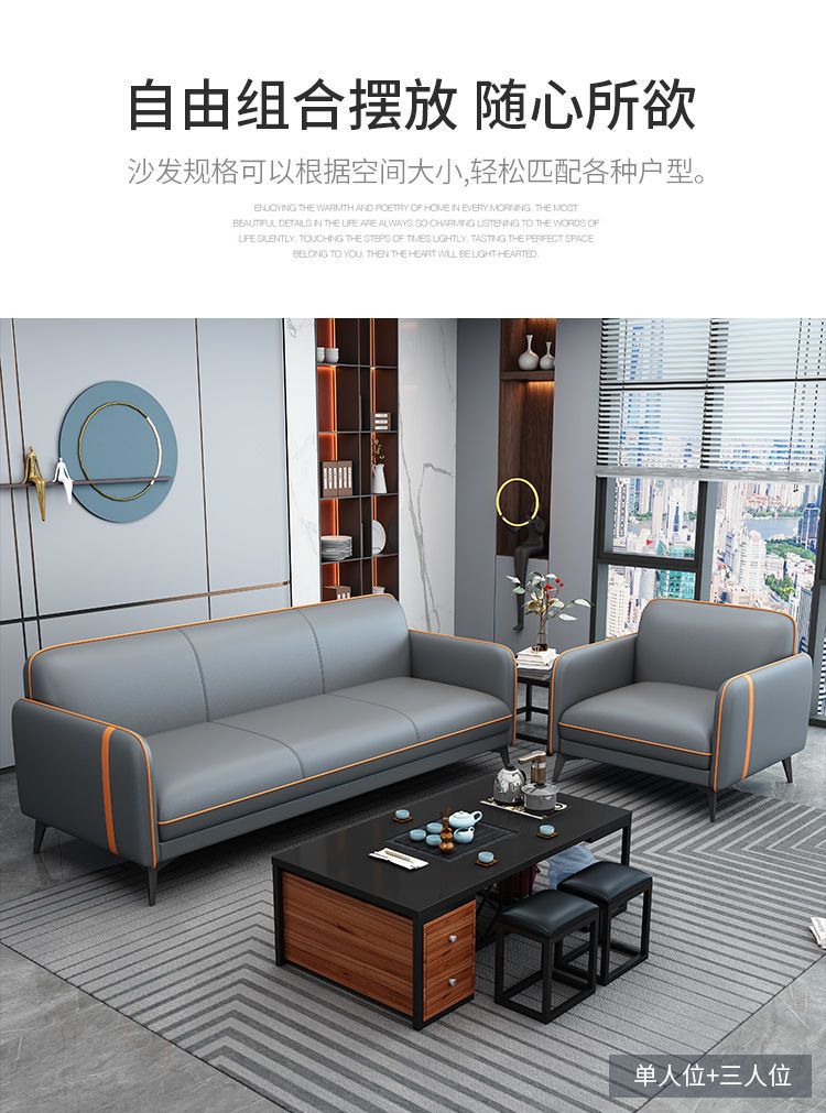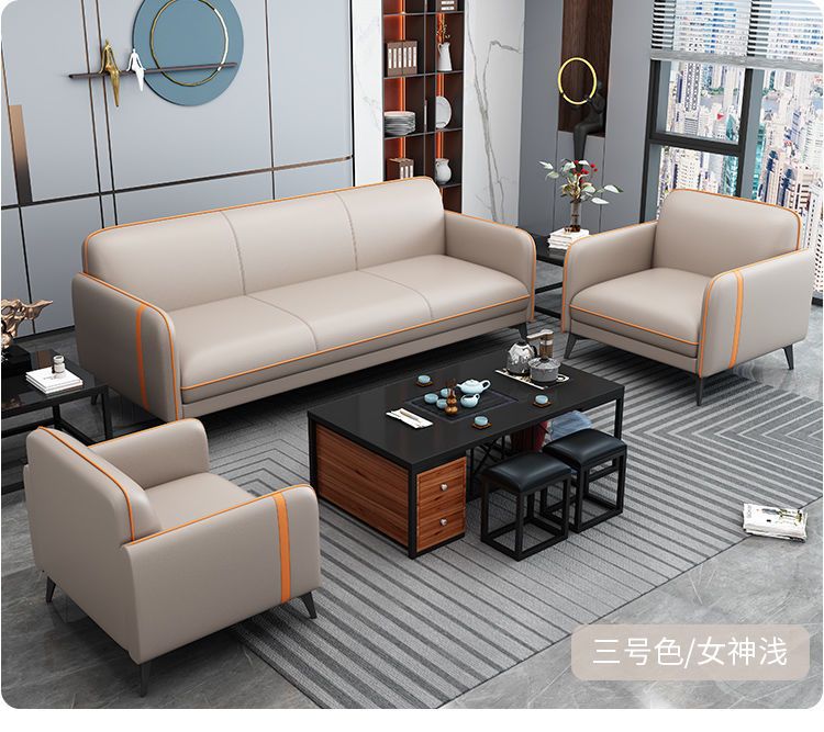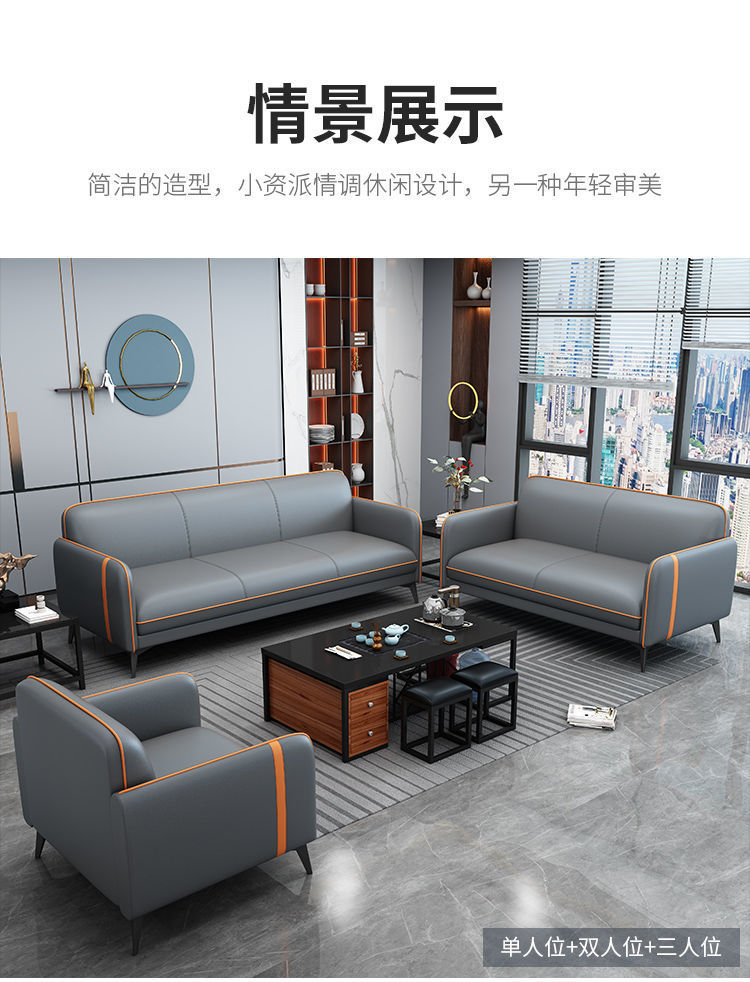Ghế sofa văn phòng hiện đại tối giản tiếp tân ba chỗ ngồi tiếp tân văn phòng kinh doanh giải trí đàm phán mới bàn cà phê kết hợp