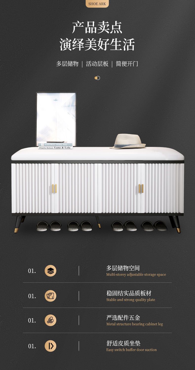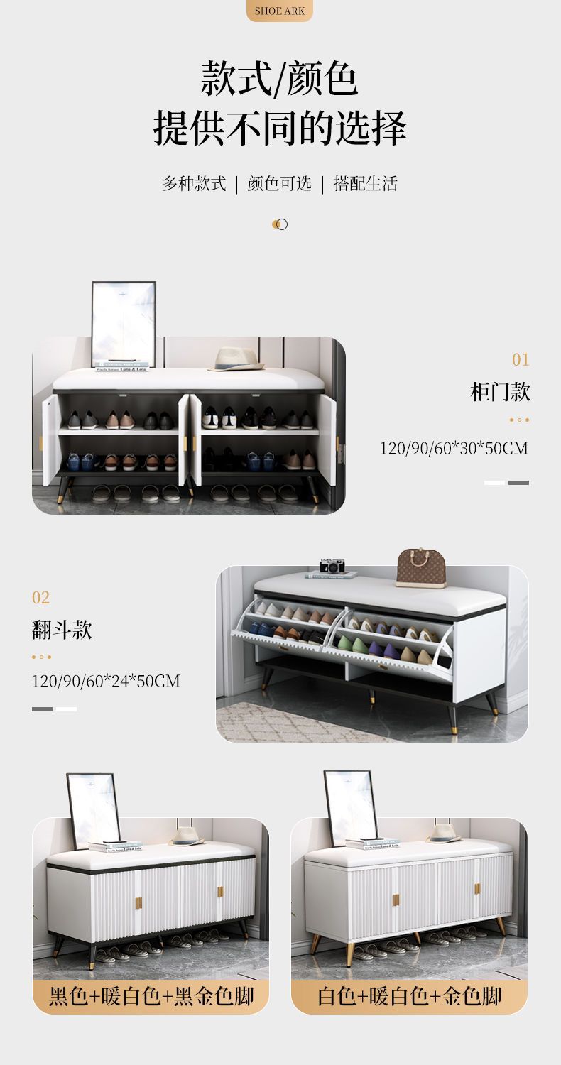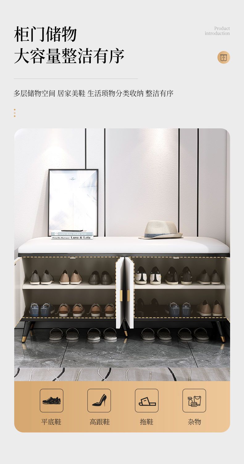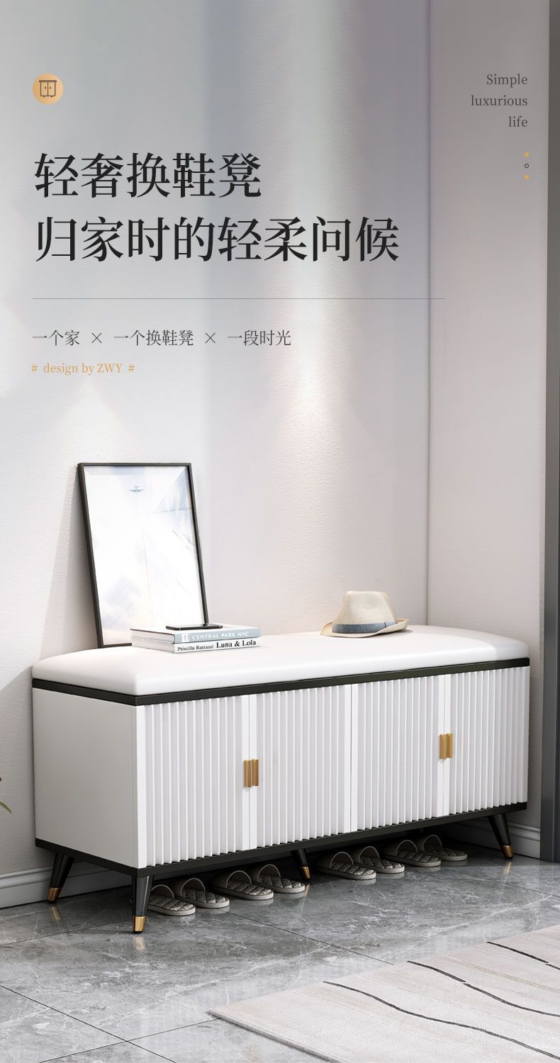 Ghế thay giày Đèn gia dụng Nhà sang trọng Tủ giày kiểu kem đơn giản