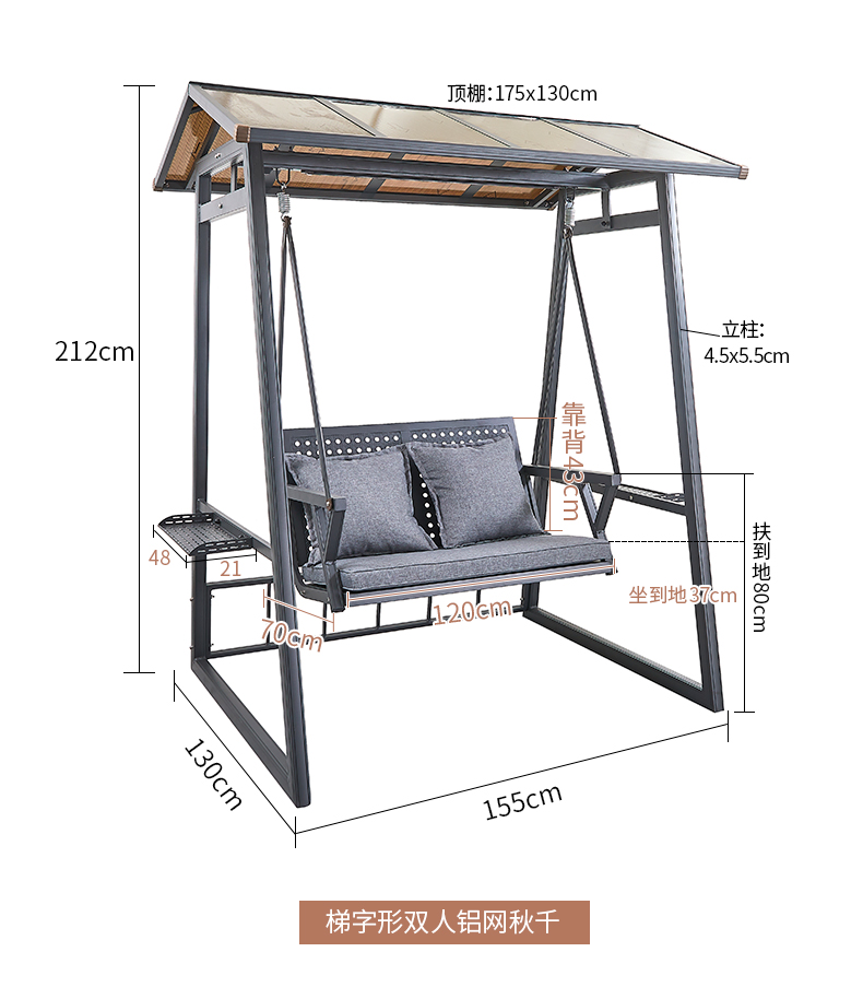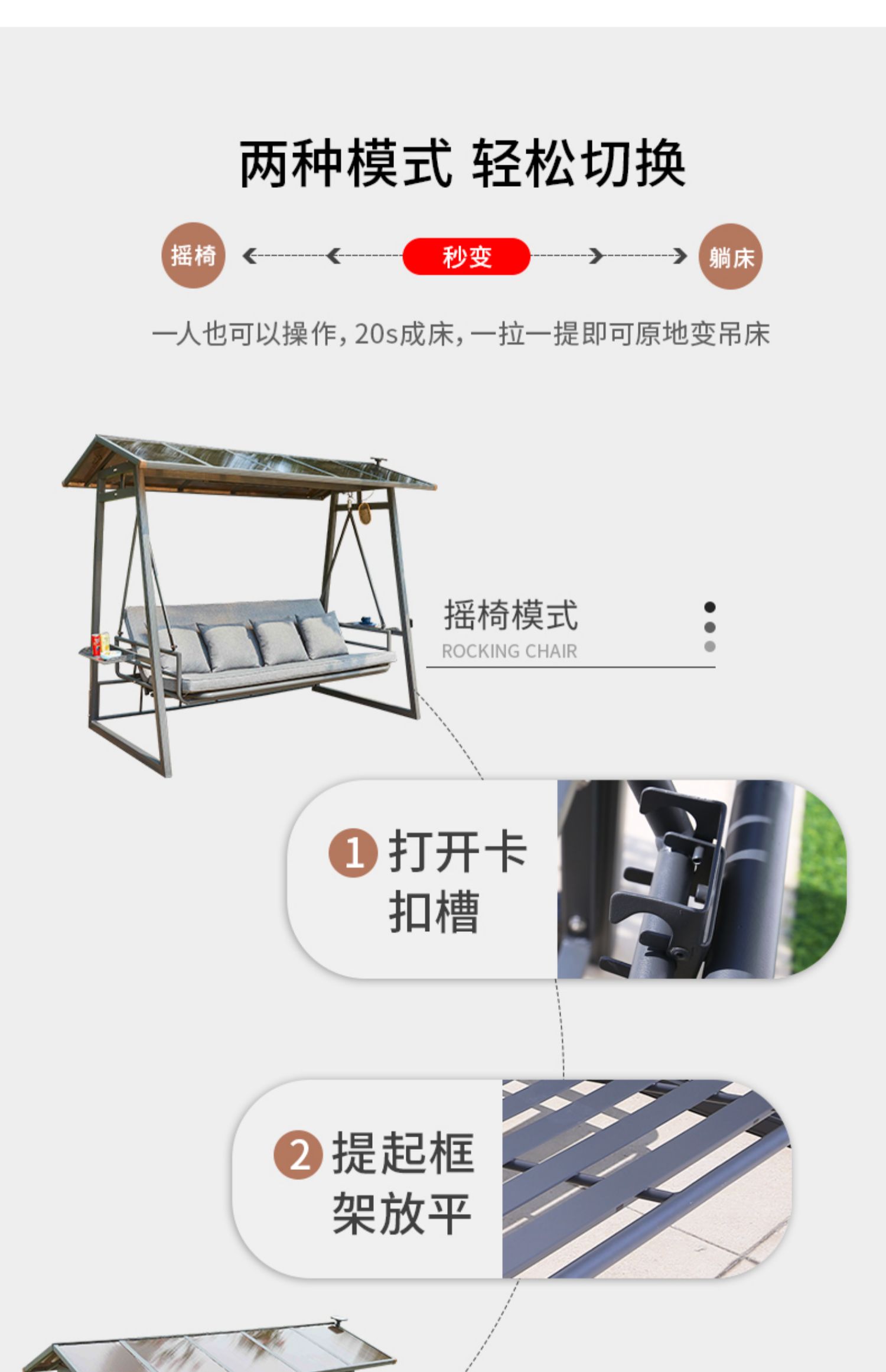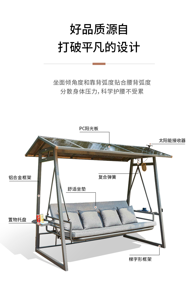 Ghế xích đu sân vườn Ban công ngoài trời Biệt thự ngoài trời năng lượng mặt trời Đúc bằng nhôm Ghế xích đu Ghế lắc Net Giường xích đu màu đỏ