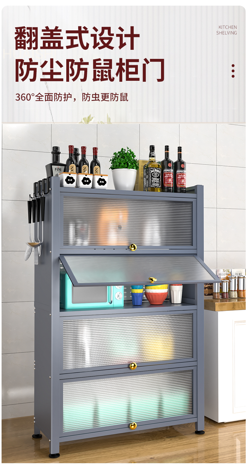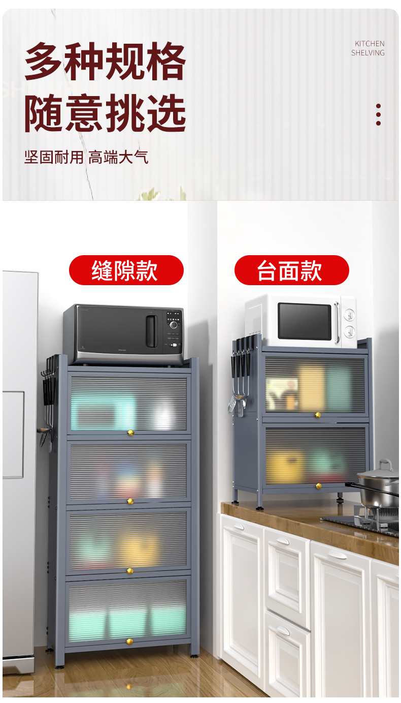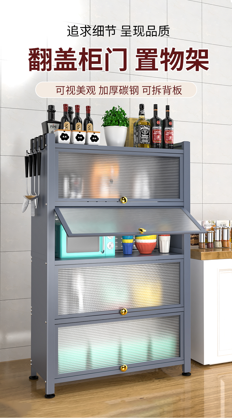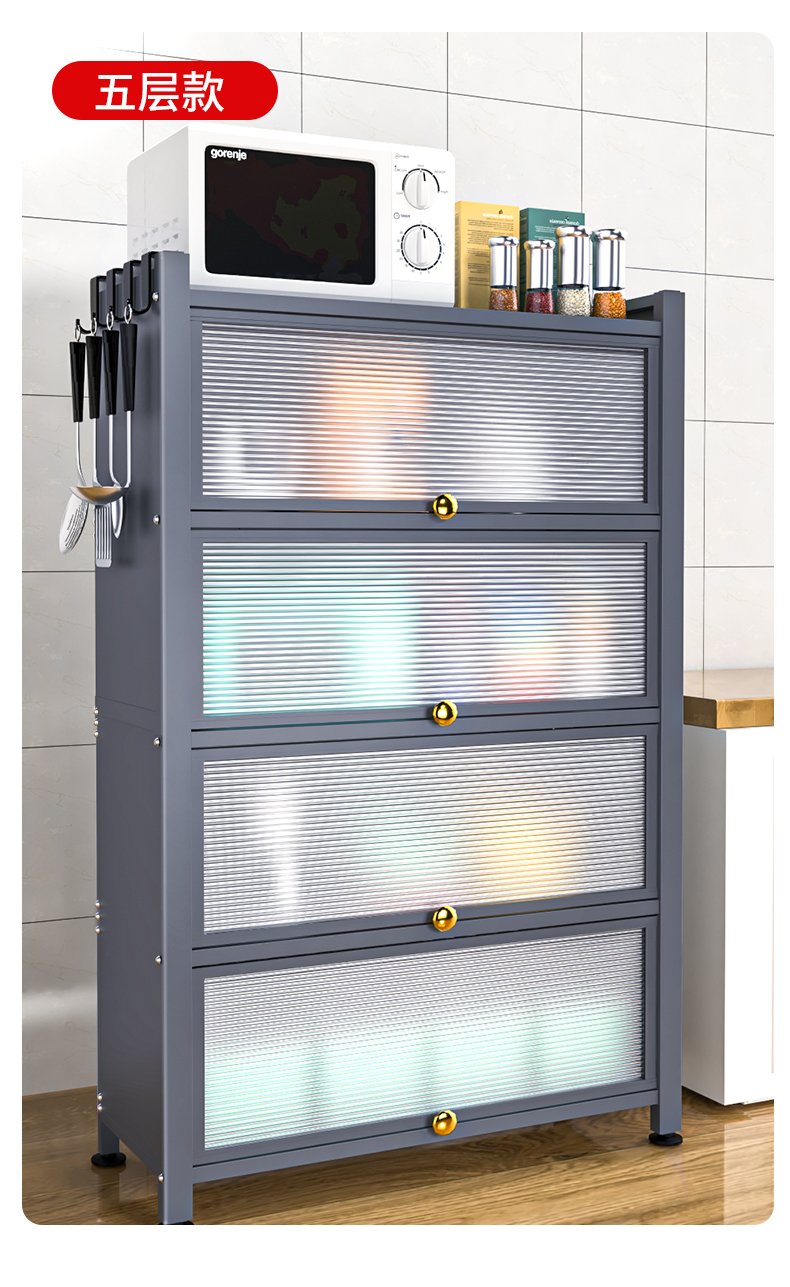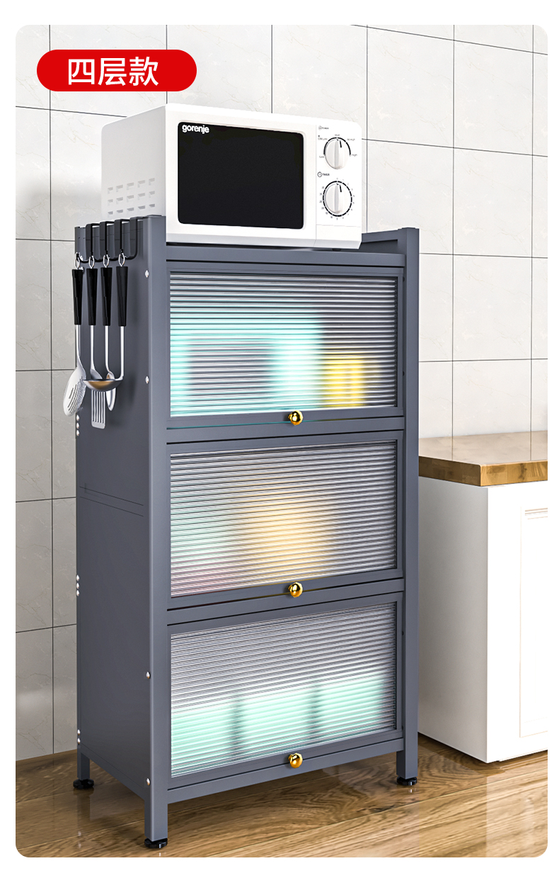 Giá bếp tầng nhiều tầng có cửa tủ đựng đồ đa năng lò vi sóng đồ dùng nhà bếp tủ đựng đồ chống bám bụi