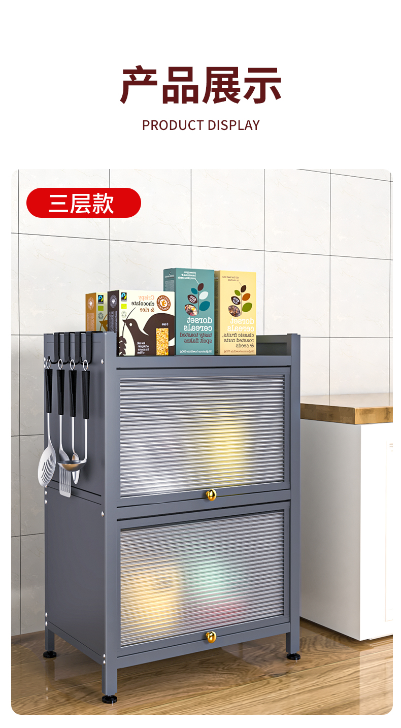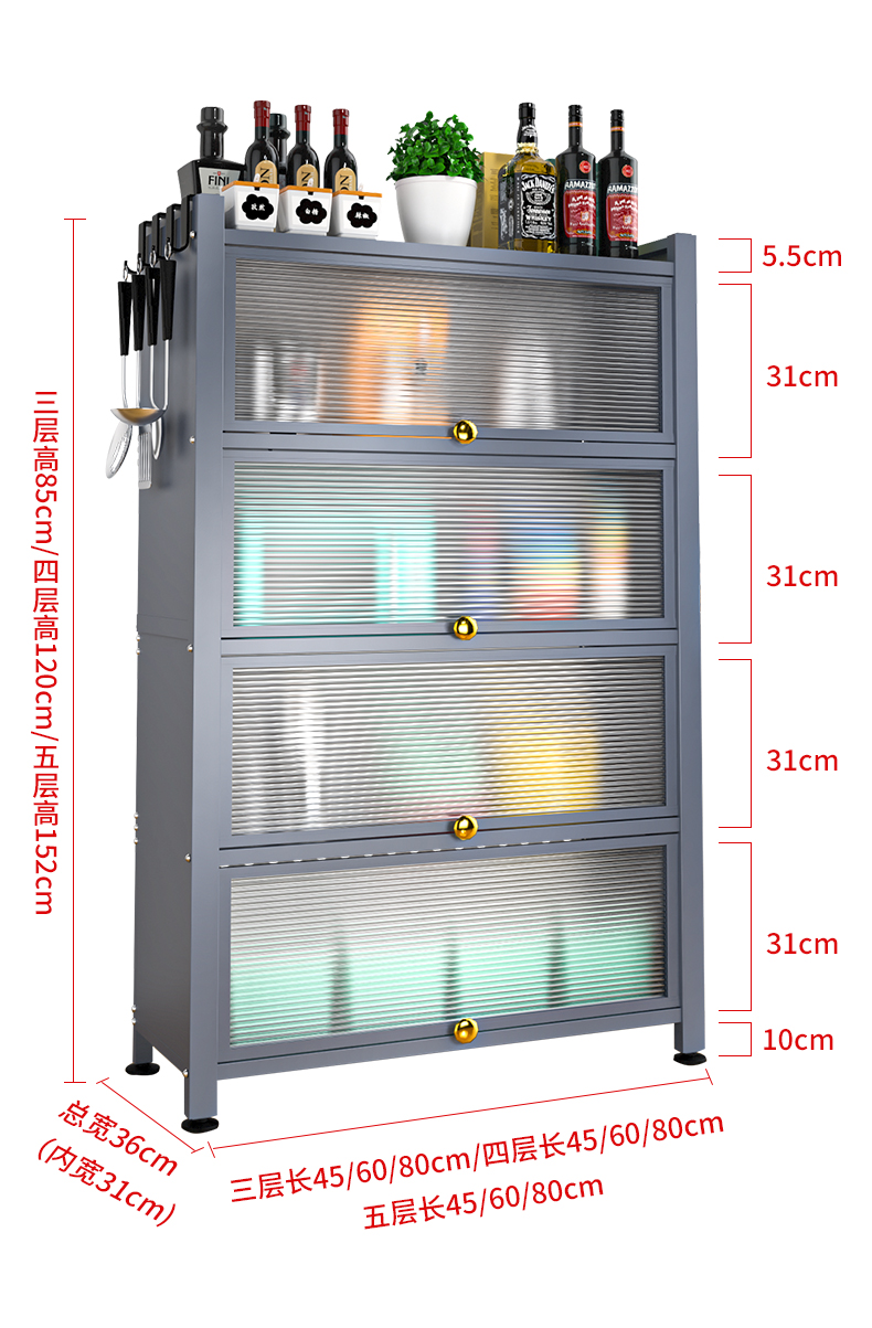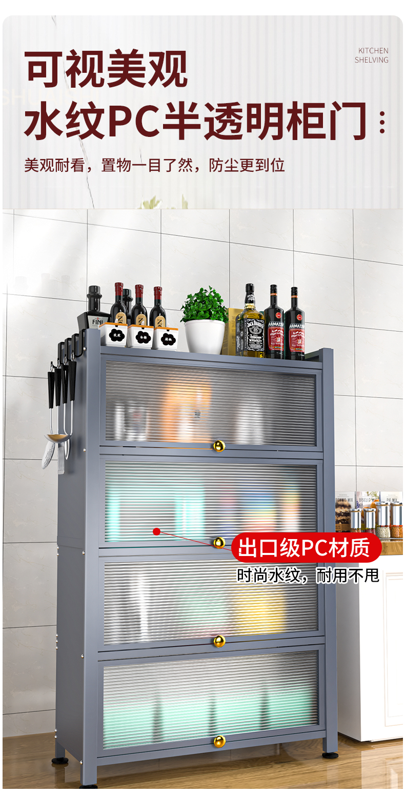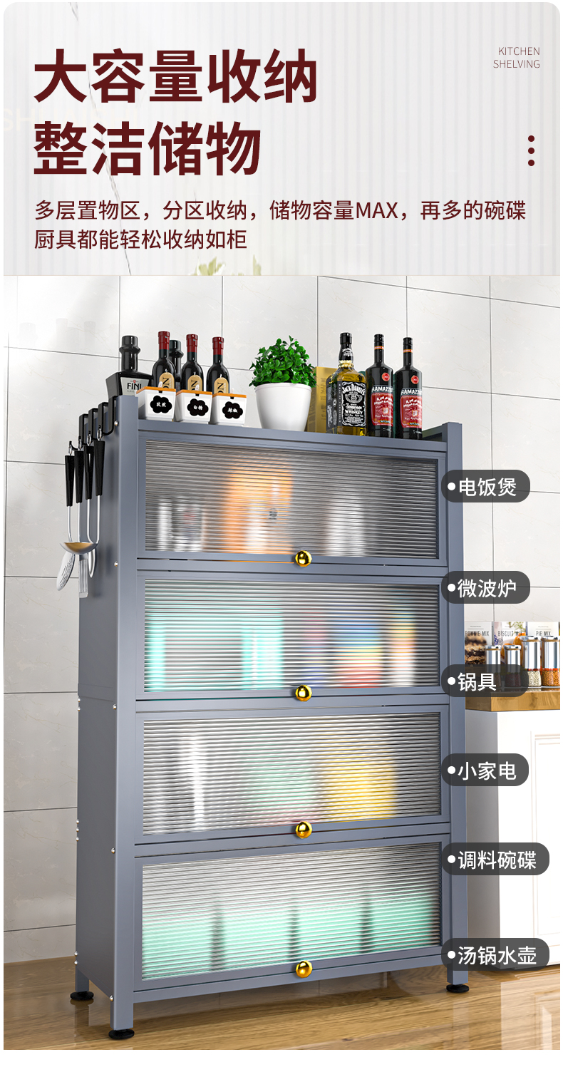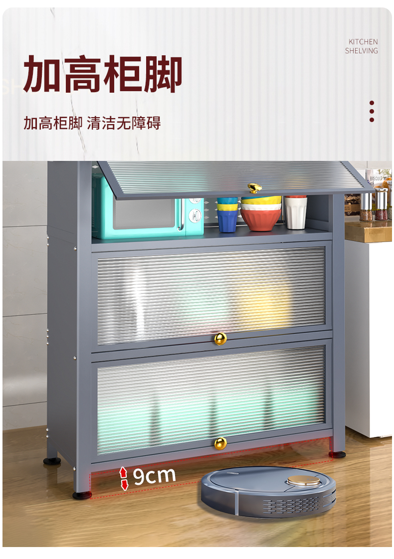 Giá bếp tầng nhiều tầng có cửa tủ đựng đồ đa năng lò vi sóng đồ dùng nhà bếp tủ đựng đồ chống bám bụi