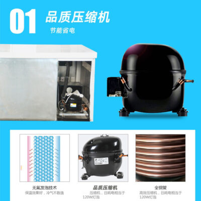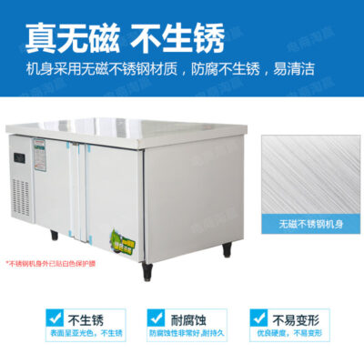 Gia công tùy chỉnh inox tươi giữ bàn làm việc thương mại quán trà sữa nhà hàng bếp sau tủ lạnh đôi chuyên dụng nằm ngang