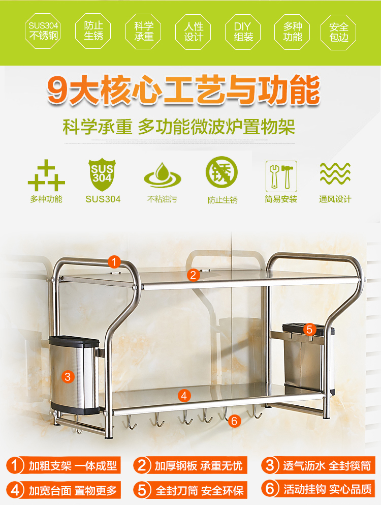 Giá để lò vi sóng bằng thép không gỉ Giá nhà bếp Giá treo tường để đồ Giá để lò nướng Giá để gia vị đồ dùng