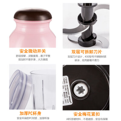 1.做各类肉馅(猪肉,鸡肉,牛肉)2.做各类酱油(辣椒酱,蒜蓉酱)3.做各种煲粥汤料(肉碎,菜碎)4.也可以做婴儿辅食(打碎食物,方便婴儿进食)5.做奶昔。做水果果汁。你能想到的都可以放进去打。都可以试试。比如:辣椒。各类水果,生肉,花生,饼干,姜蒜,鱼肉。冰块等等,太多了,亲自己试吧。