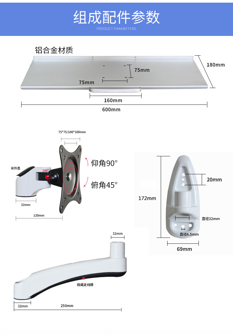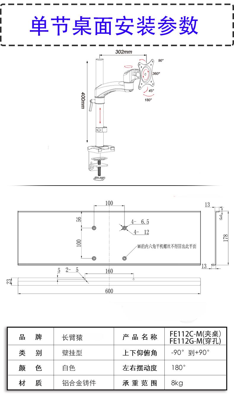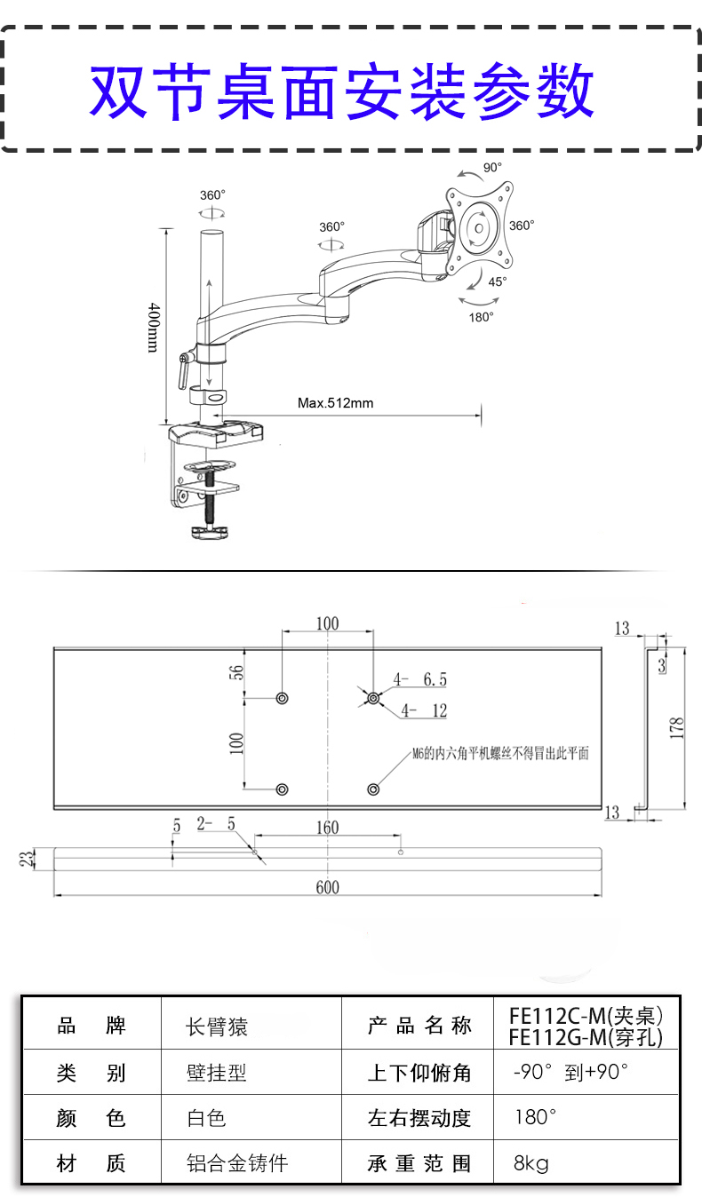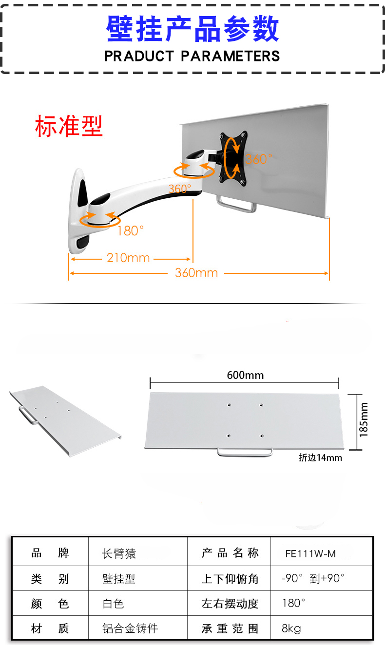 Giá đỡ màn hình máy tính Gibbon Giá đỡ bàn phím chuột Khung giá đỡ khay tất cả trong một FE111W-M