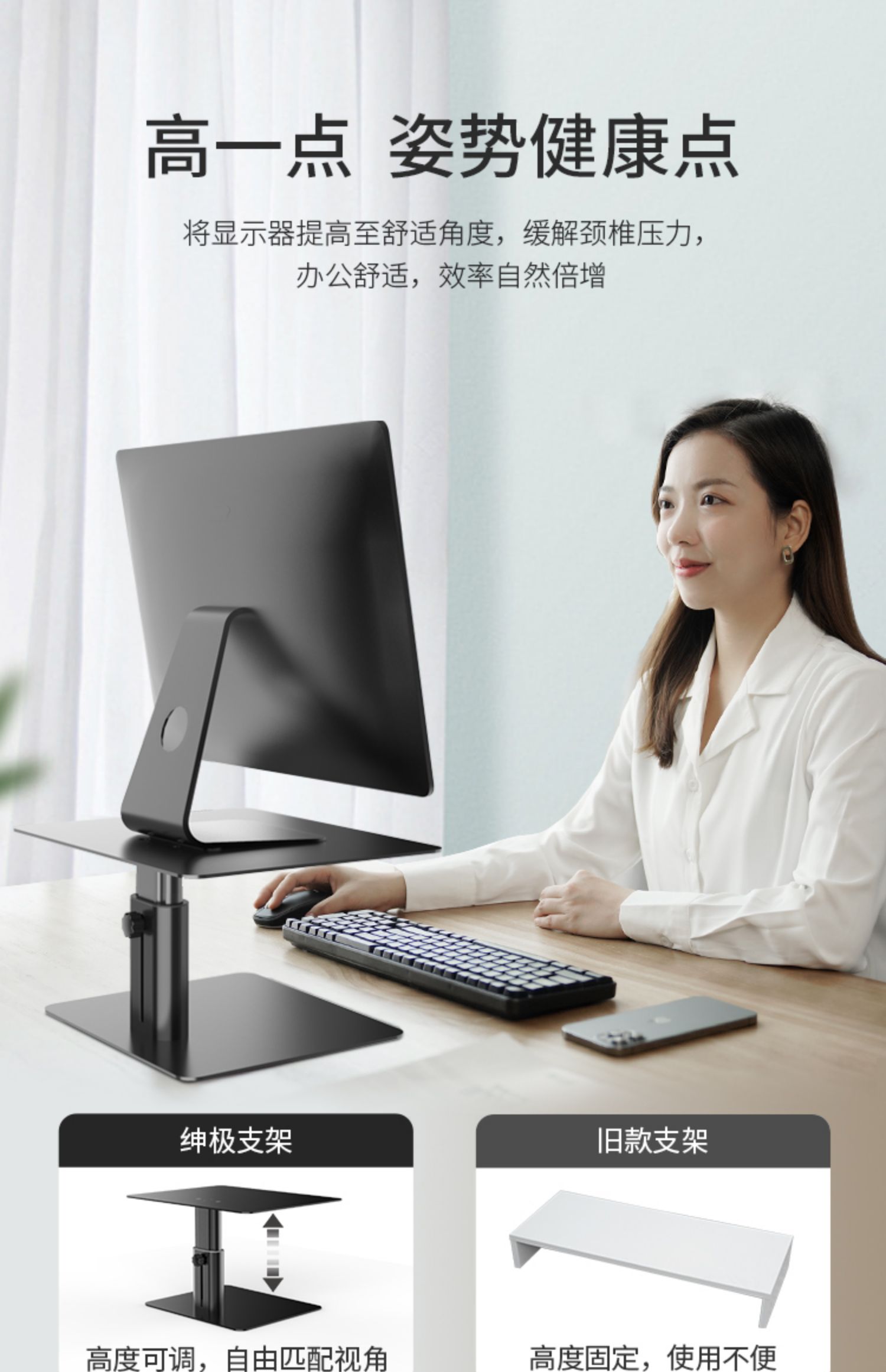 Giá đỡ màn hình máy tính nillkin Giá đỡ máy tính để bàn iMac Nelkin có thể nâng Giá đỡ để bàn dạng kính thiên văn không có lỗ Hỗ trợ treo di động Giá đỡ máy tính xách tay điều chỉnh nâng hạ