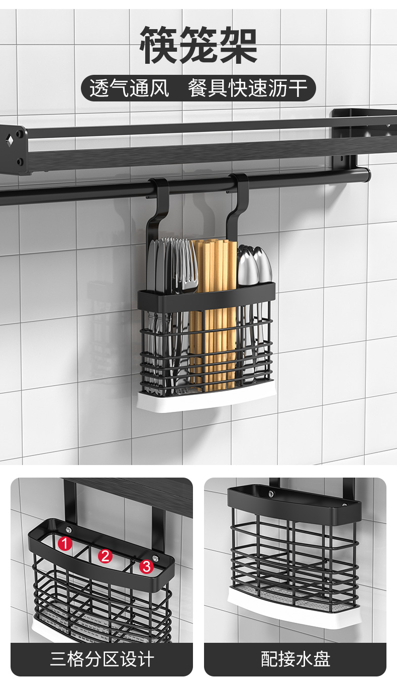 Giá đỡ nhà bếp bằng thép không gỉ màu đen treo tường