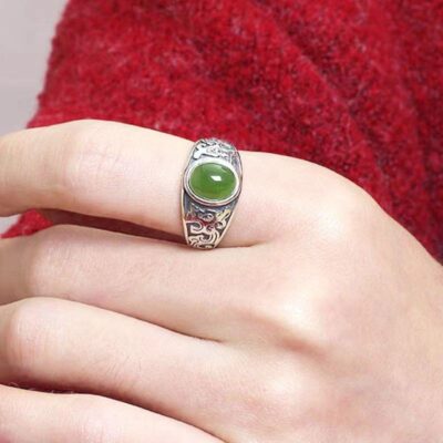 Giả Hetian ngọc jasper nhẫn bạc nam phong cách retro ngọc lục bảo nhẫn nữ ngọc lục bảo sống ngón đeo nhẫn