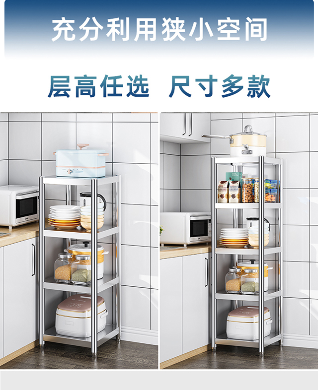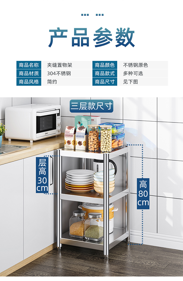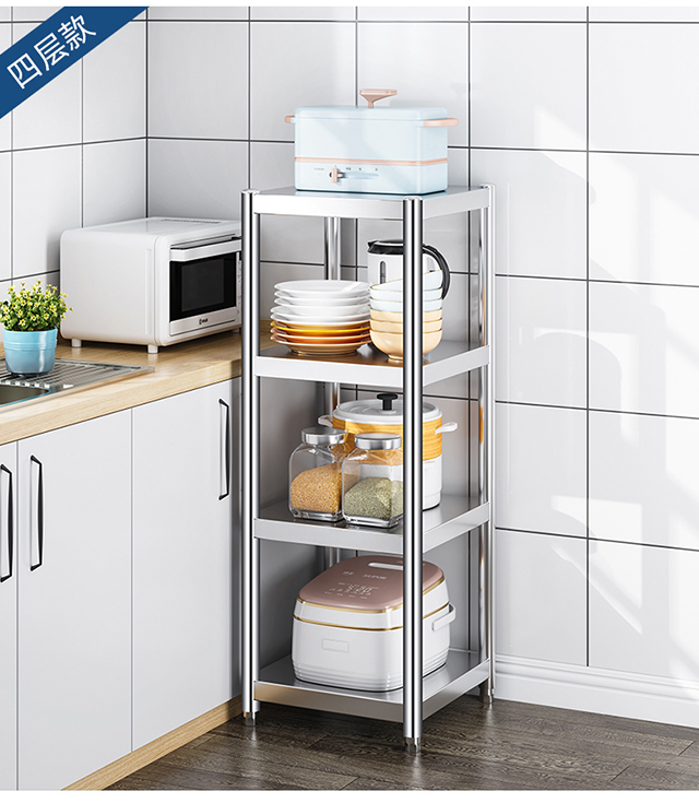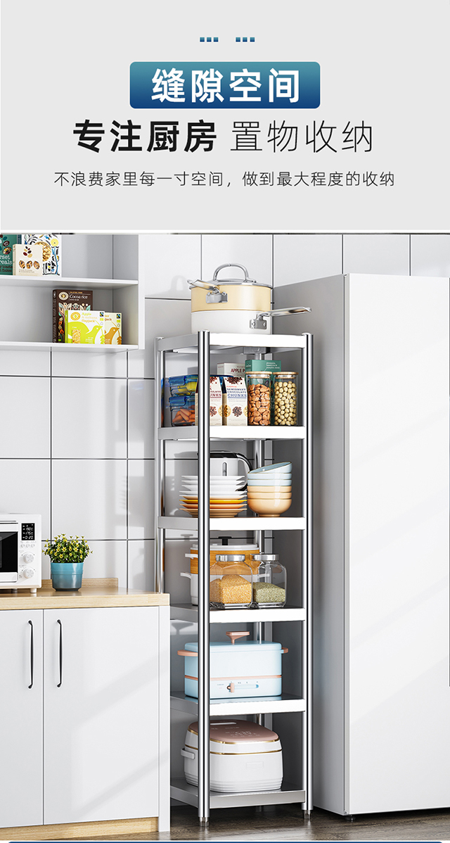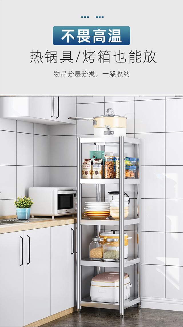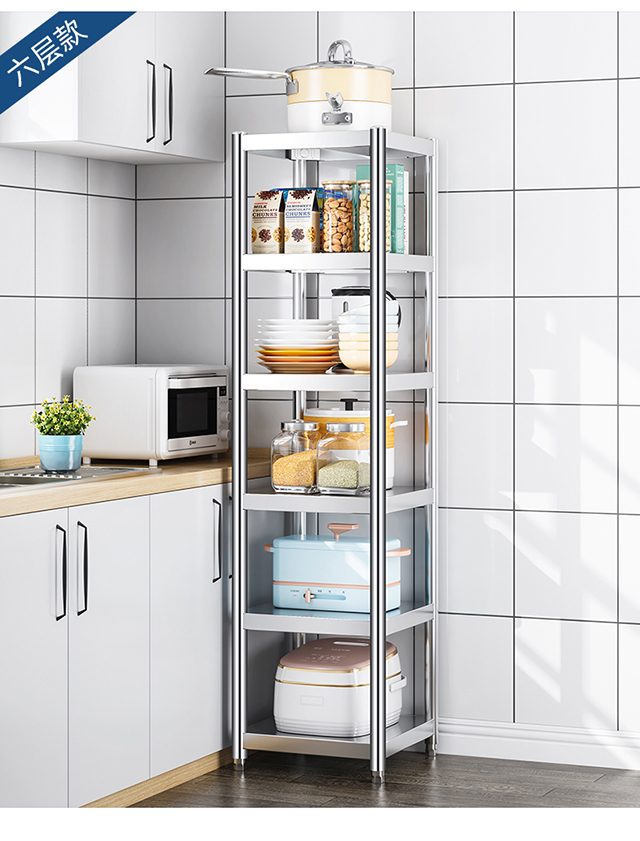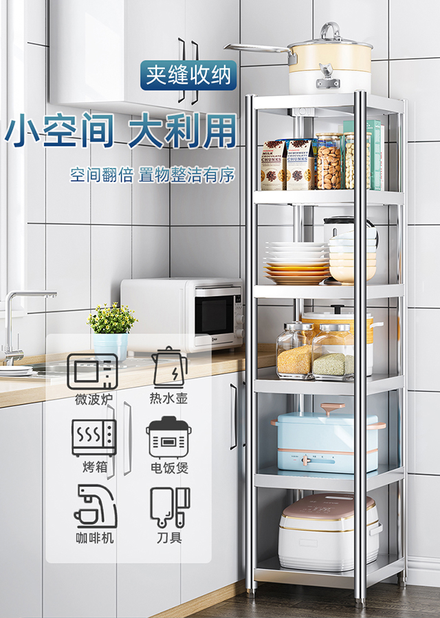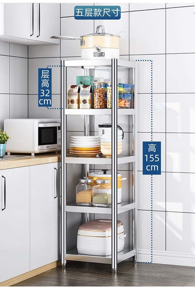 Giá nhà bếp bằng thép không gỉ 304 Giá để đồ có rãnh 35cm Giá để đồ nhà bếp tiết kiệm không gian từ sàn đến trần năm tầng