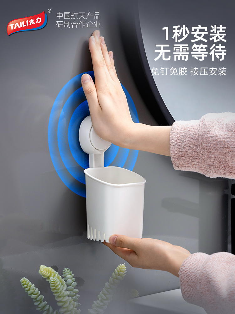 Giá nhà vệ sinh Taili treo tường bàn rửa không đục lỗ bàn chải đánh răng giá đựng lược hộp đựng đồ phòng tắm hình trụ