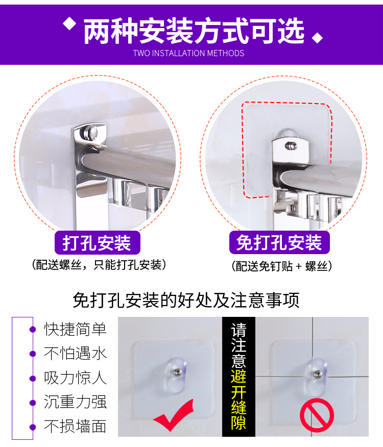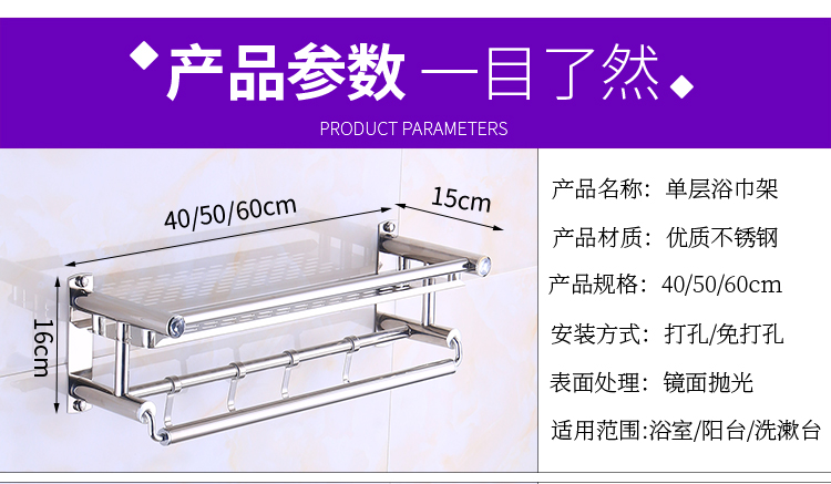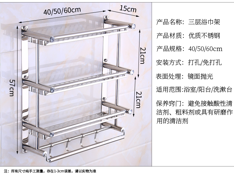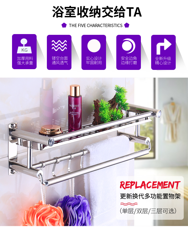 Giá phòng tắm treo tường bằng thép không gỉ đục lỗ giá treo khăn tắm phòng tắm vật tư nhà vệ sinh