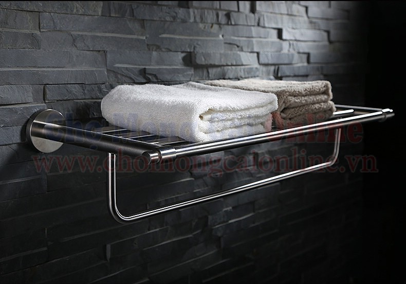 Phía trên là giá để khắn tăm ngay phía dưới là một thanh cong giúp bạn treo khăn đã sử dụng lên khá tiện lợi cho gia đình