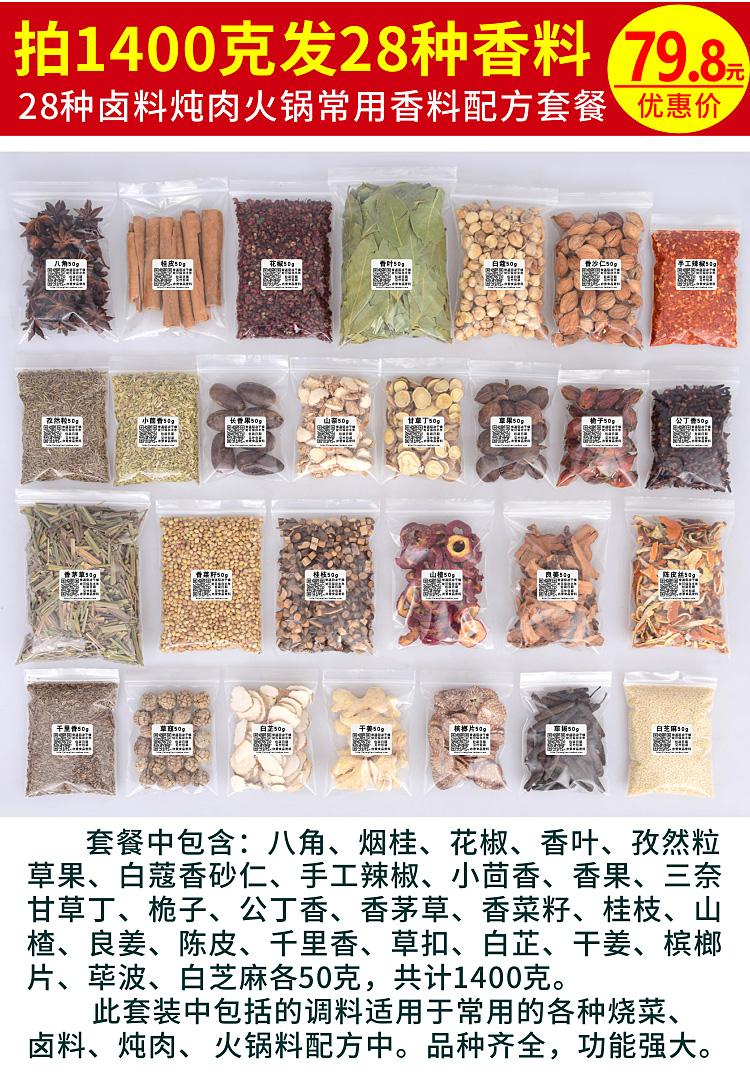Gia vị gia vị Daquan số lượng lớn thịt kho công thức gia vị hoa hồi hoa hồi quế gai tro cỏ quả lá thơm thảo quả
