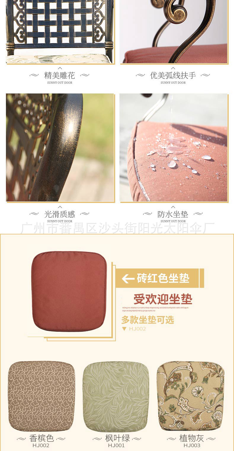 Giải trí ngoài trời bàn ghế nhôm đúc ba năm mảnh kết hợp biệt thự giải trí ngoài trời ban công sân vườn bàn tròn tiệc nướng là lựa chọn lý tưởng cho không gian ngoài trời hiện đại. Liên hệ ngay để được hỗ trợ nhập khẩu và tư vấn chi tiết.