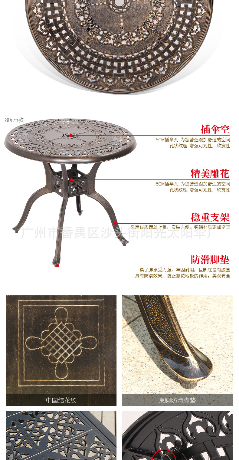 Giải trí ngoài trời bàn ghế nhôm đúc ba năm mảnh kết hợp biệt thự giải trí ngoài trời ban công sân vườn bàn tròn tiệc nướng được thiết kế để tạo điểm nhấn cho khu vực sân vườn, ban công hoặc không gian ngoài trời.