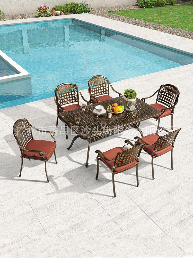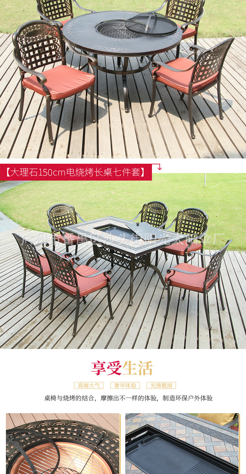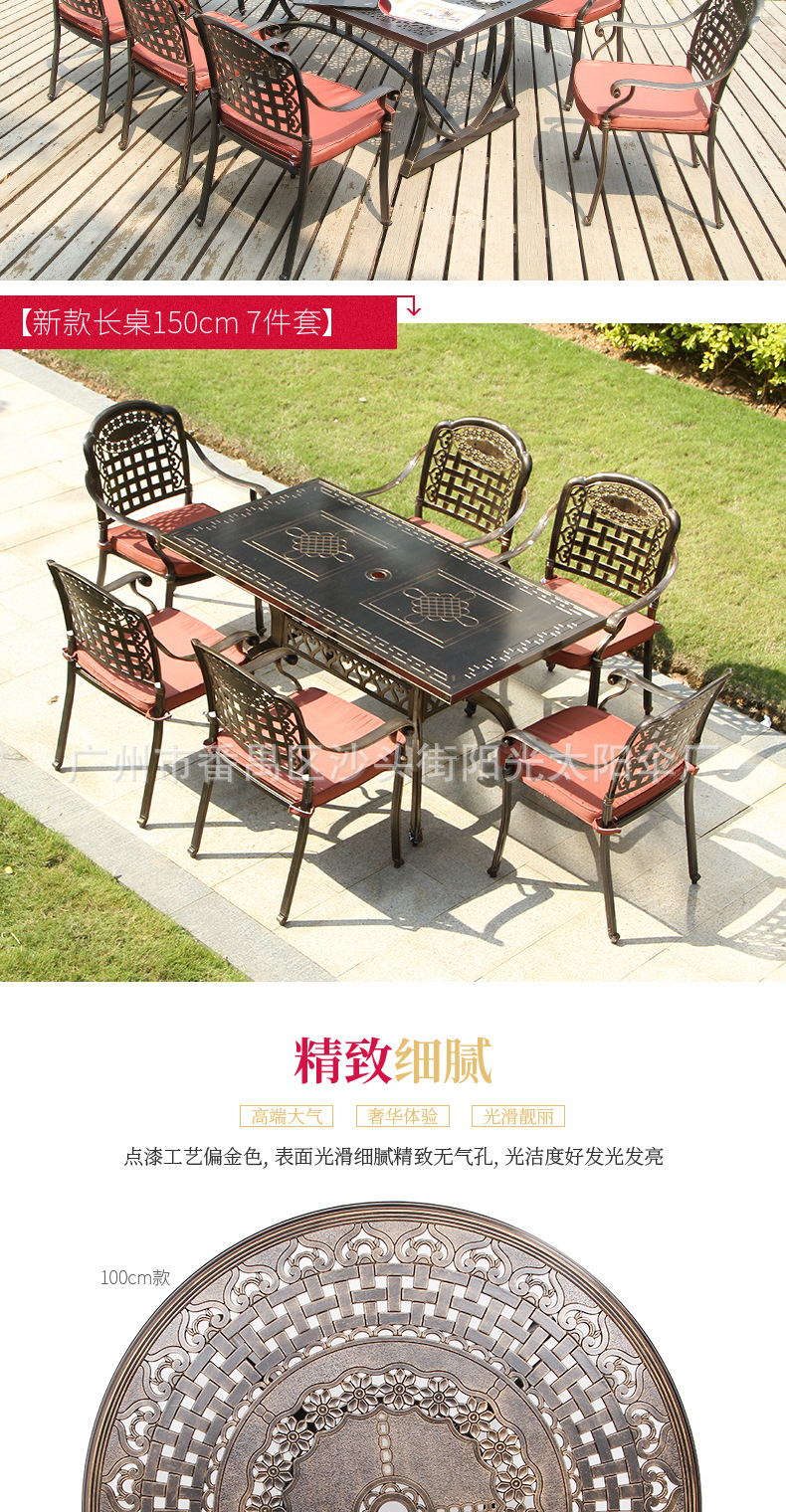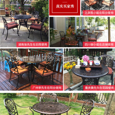 Giải trí ngoài trời bàn ghế nhôm đúc ba năm mảnh kết hợp biệt thự giải trí ngoài trời ban công sân vườn bàn tròn tiệc nướng là lựa chọn lý tưởng cho không gian ngoài trời hiện đại. Liên hệ ngay để được hỗ trợ nhập khẩu và tư vấn chi tiết.