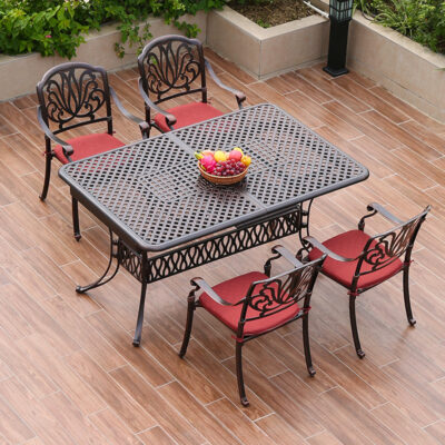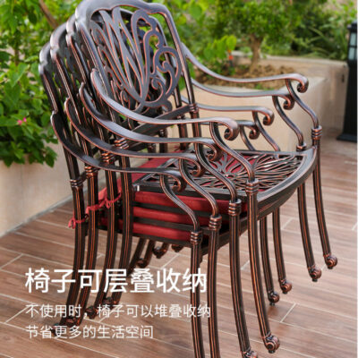 Giải trí ngoài trời sân vườn kim loại sắt nướng bàn ăn Bộ bàn ghế chống nước Bộ bàn ghế nhôm đúc ngoài trời