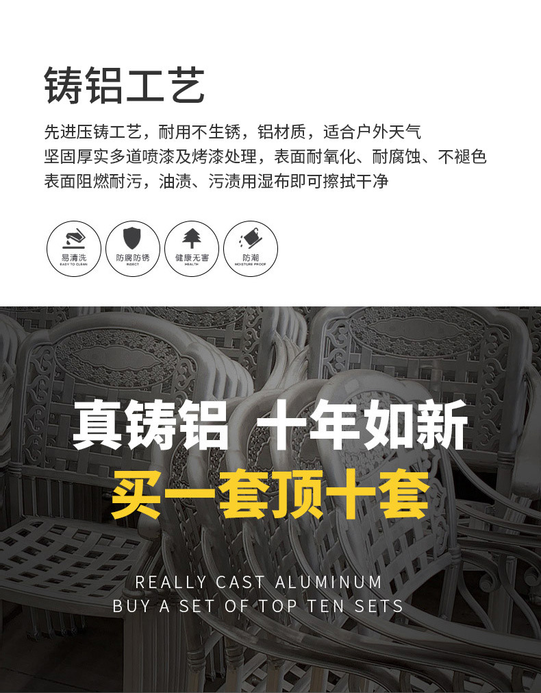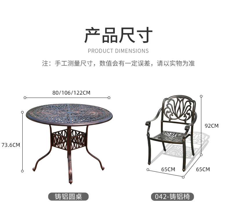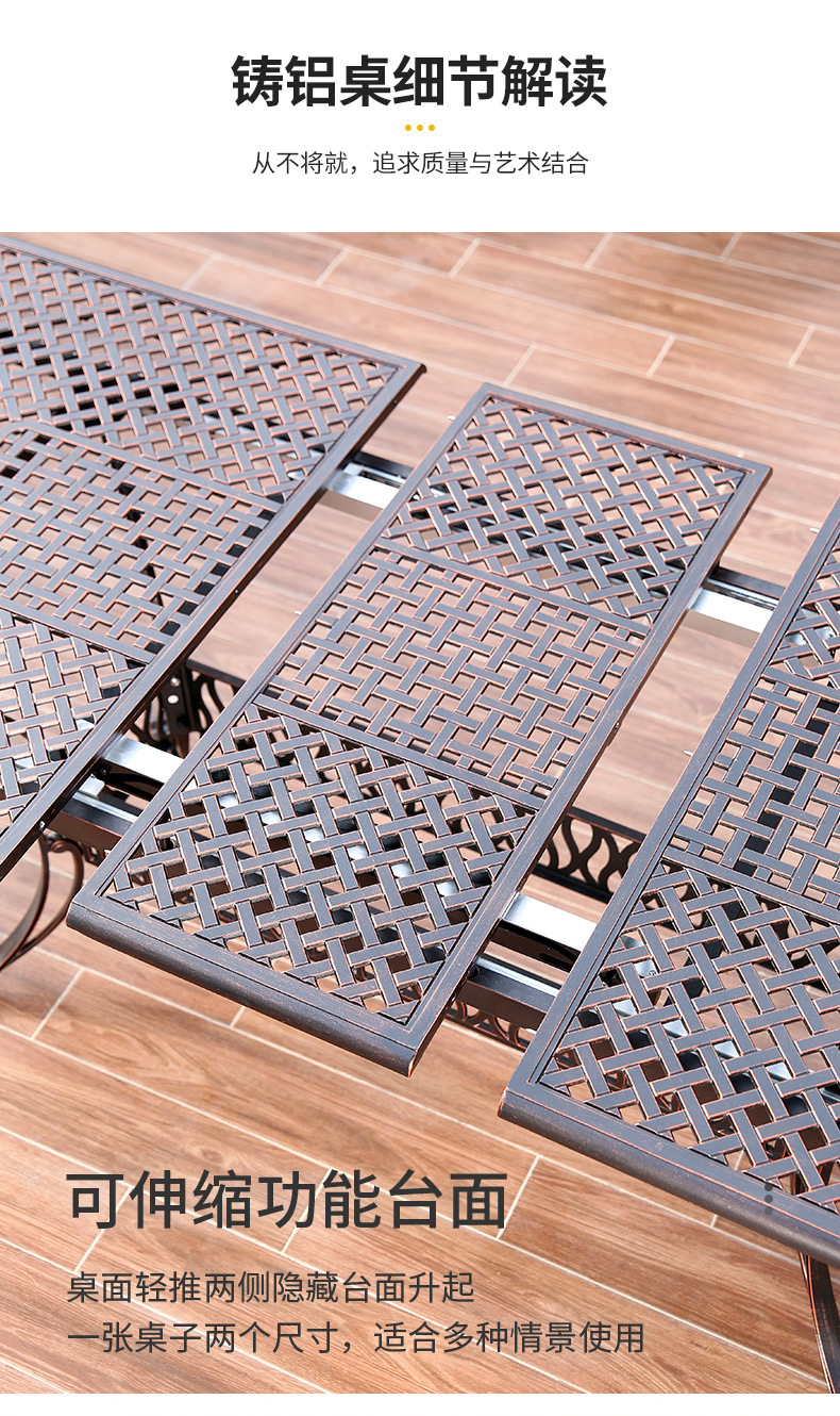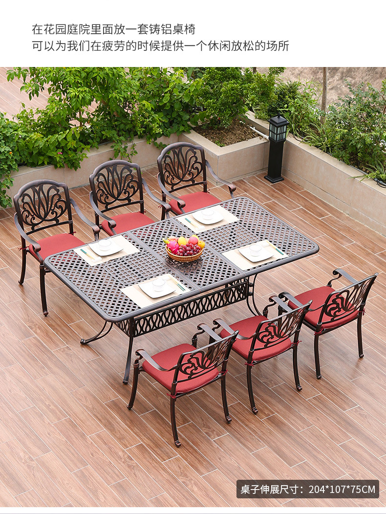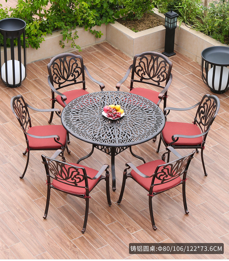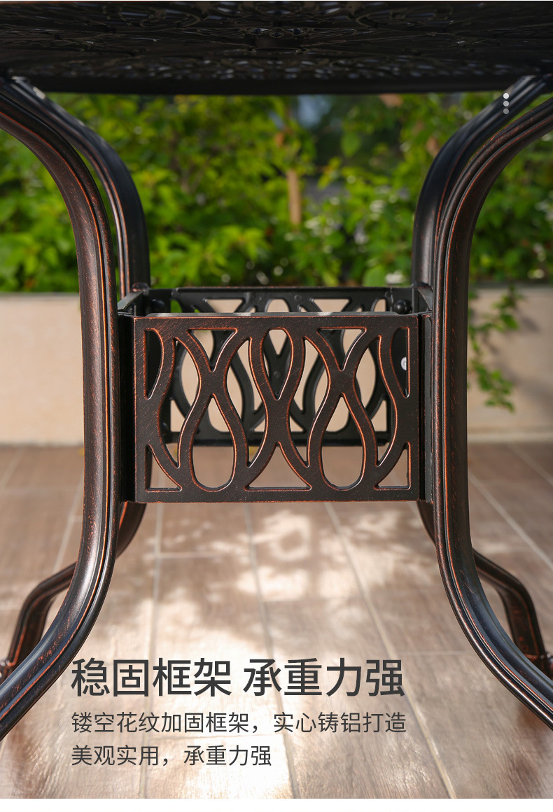 Giải trí ngoài trời sân vườn kim loại sắt nướng bàn ăn Bộ bàn ghế chống nước Bộ bàn ghế nhôm đúc ngoài trời