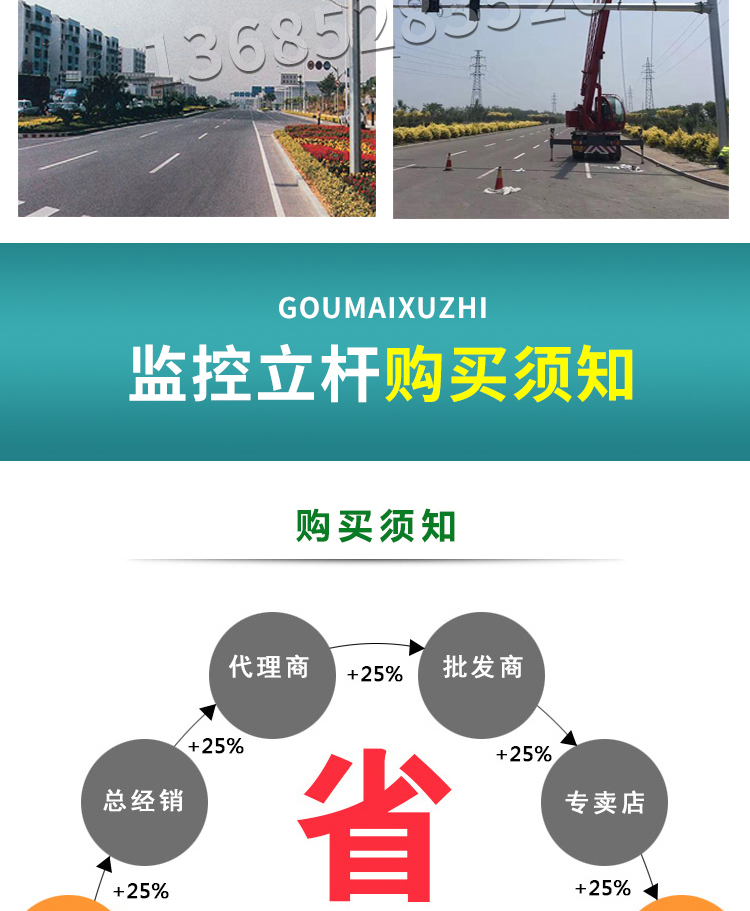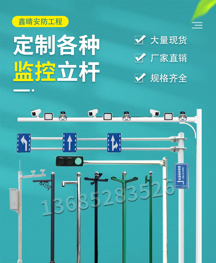 Giám sát cột hình bát giác cực côn cột biển báo 7/8/9 mét giám sát cột đèn tín hiệu kiểu chữ T cột đèn tín hiệu loại L Cột giám sát đường bộ