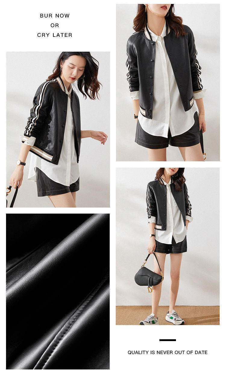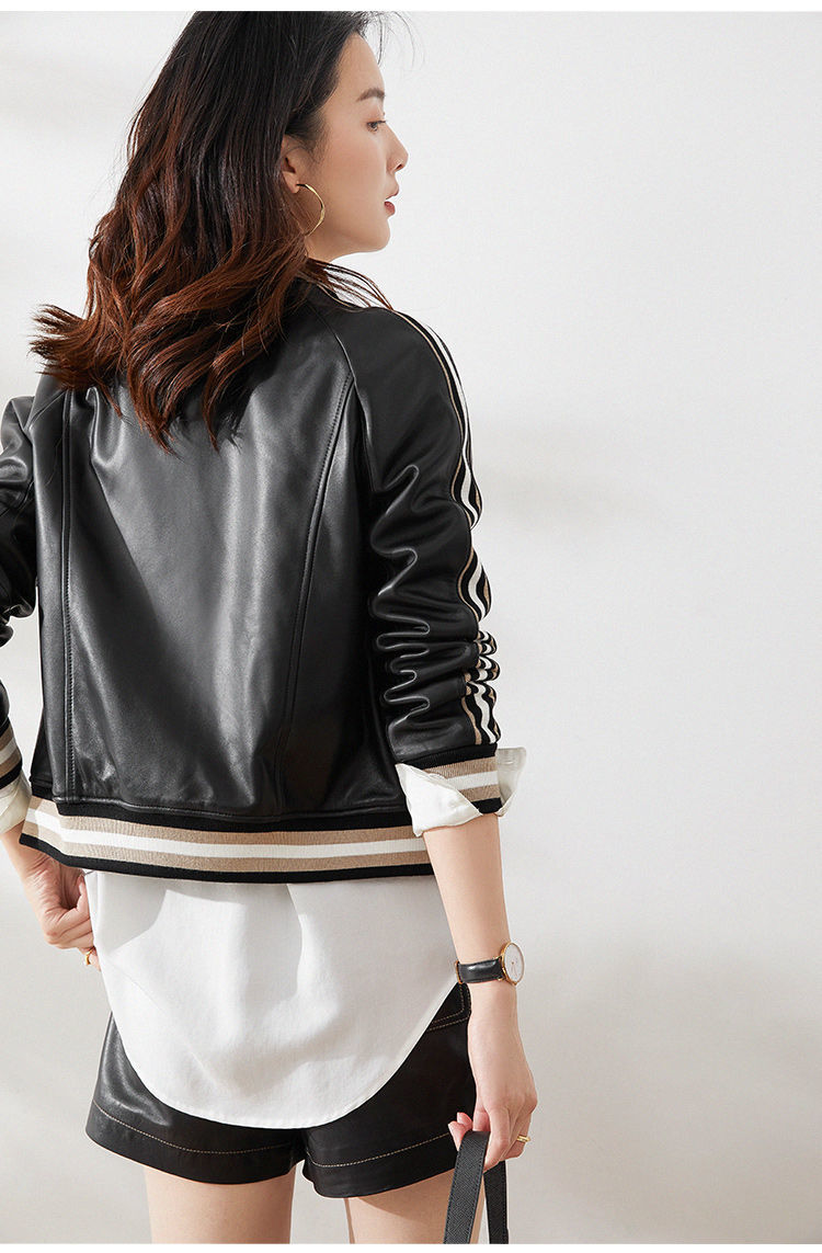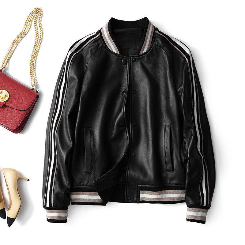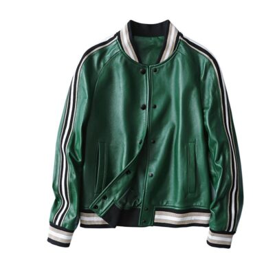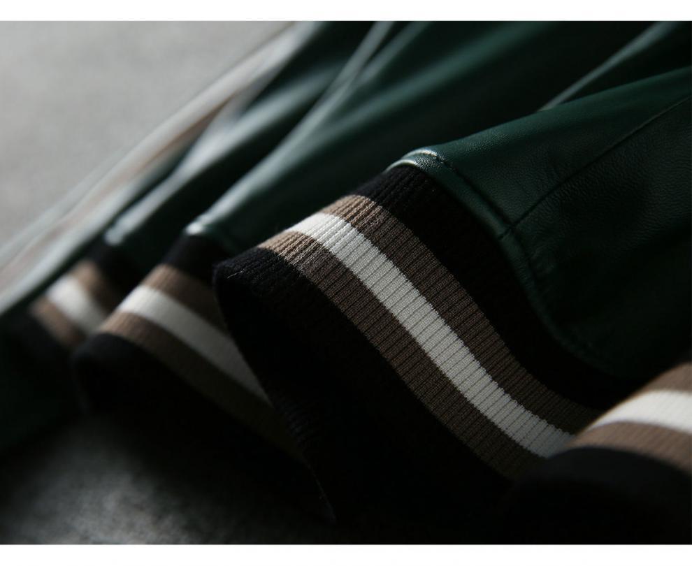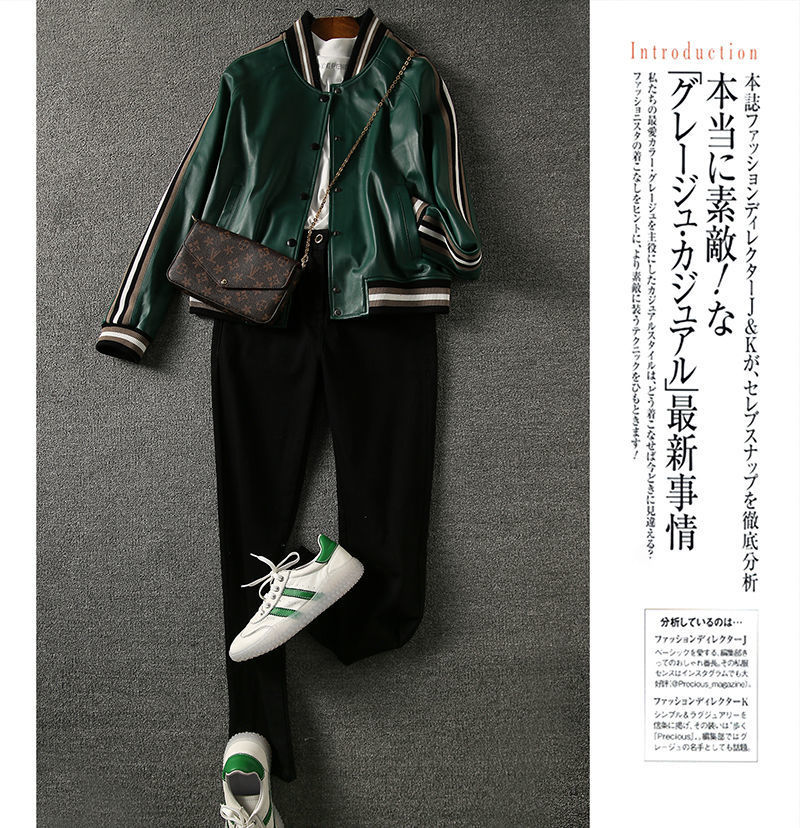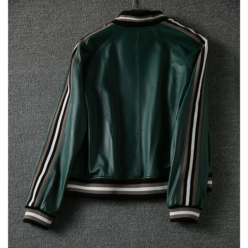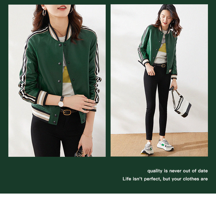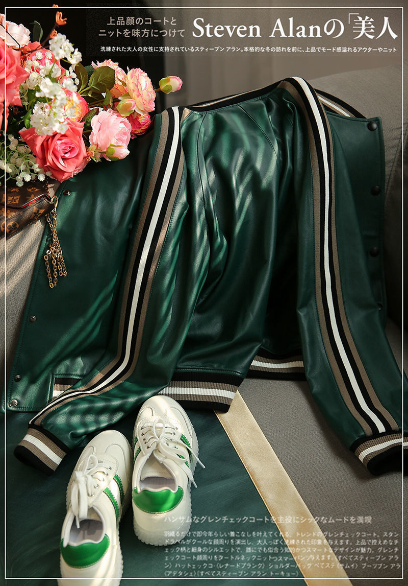 Giành chiến thắng vào đầu mùa thu Đẹp trai và gọn gàng màu xanh lá cây giả da cừu áo khoác bóng chày ngắn áo khoác da phụ nữ trông gầy