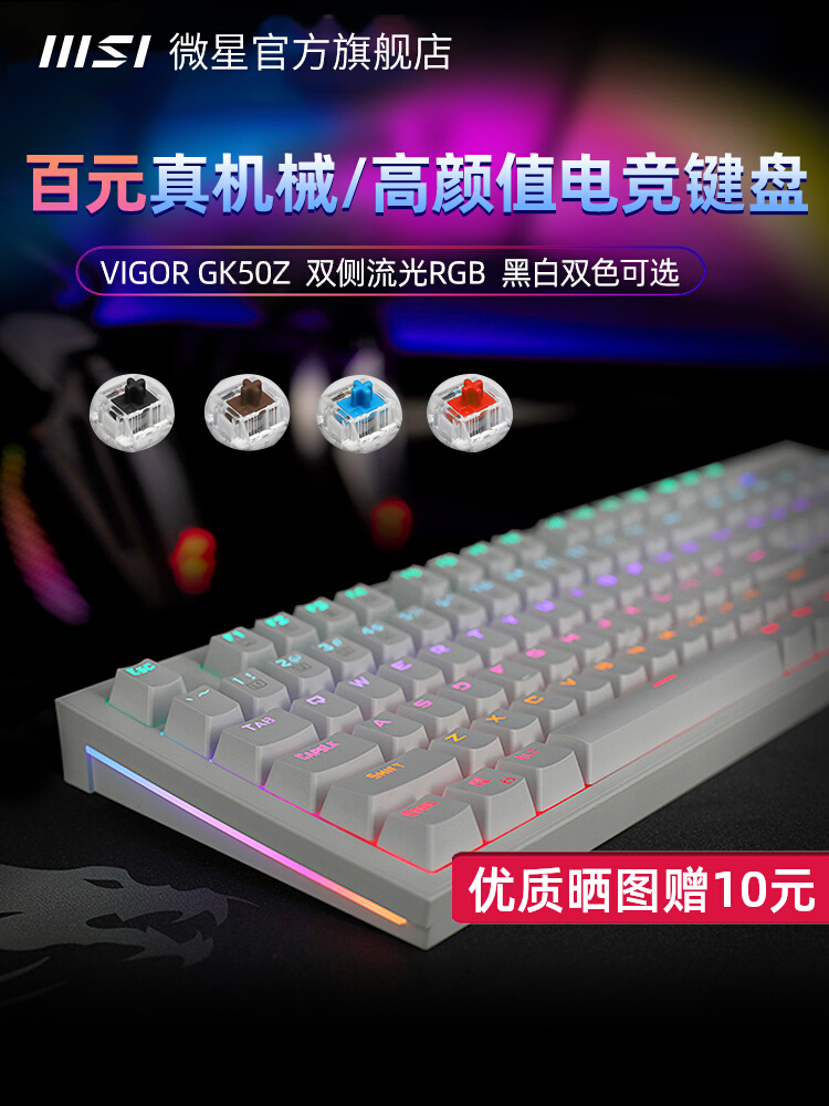 (Giao hàng trực tiếp trên Tmall) Bộ chuột và bàn phím cơ MSI / MSI GK50Z rgb hiệu suất ánh sáng cao đặc biệt trục xanh đen trục trà trục đỏ máy tính xách tay máy tính để bàn có dây chơi game màu trắng 87/104