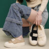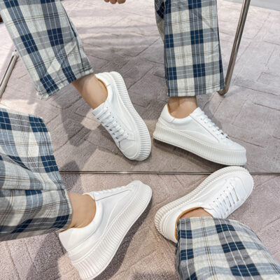 Giày bánh quy đế dày nữ da bò nguyên miếng giày nhỏ màu trắng tăng bình thường đế thấp đế bằng bánh xốp thể thao đáy nho mẹ da thật
