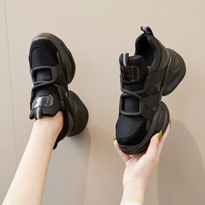 Giày bố da thật nữ phiên bản Hàn Quốc mùa xuân và mùa thu 2023 mới màu đen đế dày bên trong lót giày cao màu đỏ giày thể thao tất cả các trận đấu