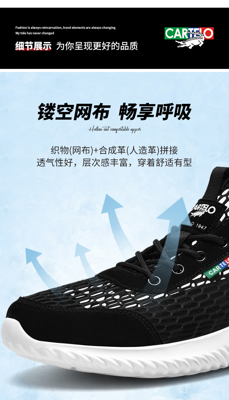 Giày cá sấu Cartelo giày lưới nam thoáng khí nhẹ mùa hè mỏng lưới lớn giày thể thao giày lưới thường ngày giày nam
