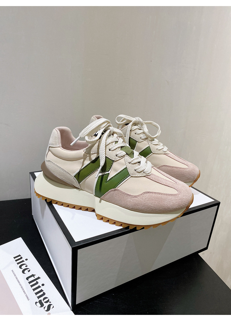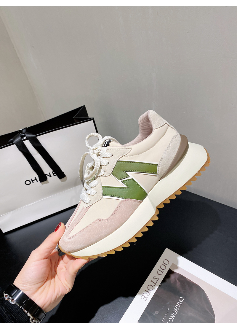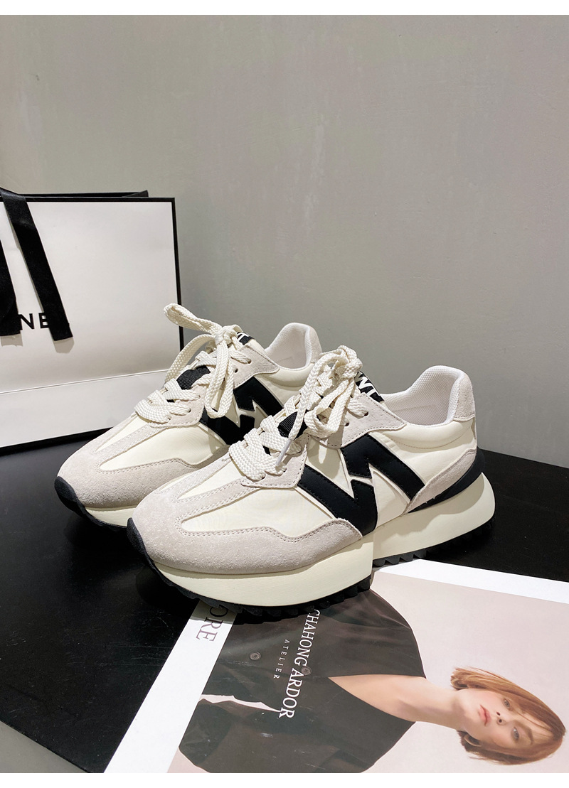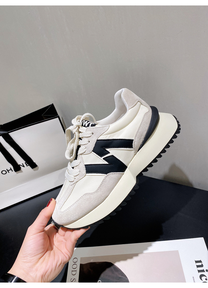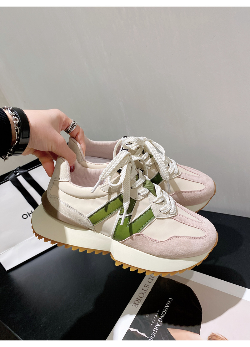 Giày cha thương hiệu hợp thời trang Hàn Quốc Giày da dày đế eo nhỏ của phụ nữ Giày Forrest Gump mùa xuân và mùa thu giày thể thao thông thường có dây buộc phù hợp với tất cả các trận đấu