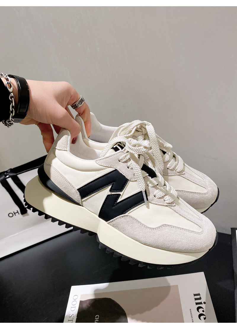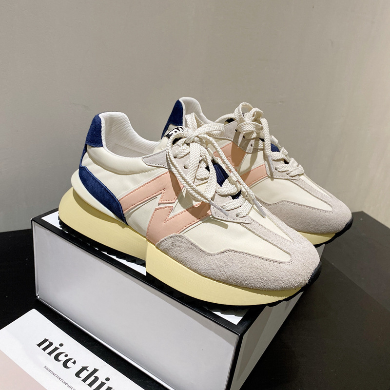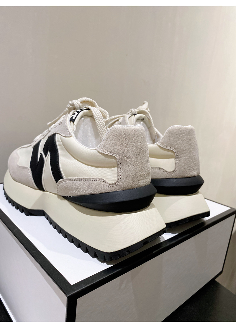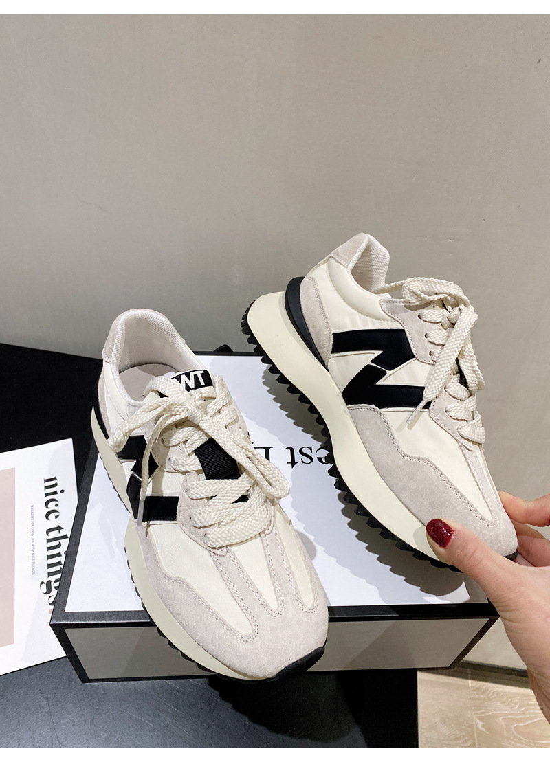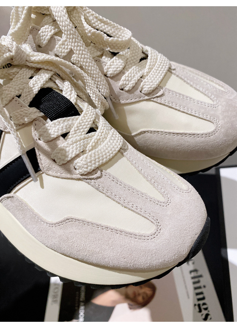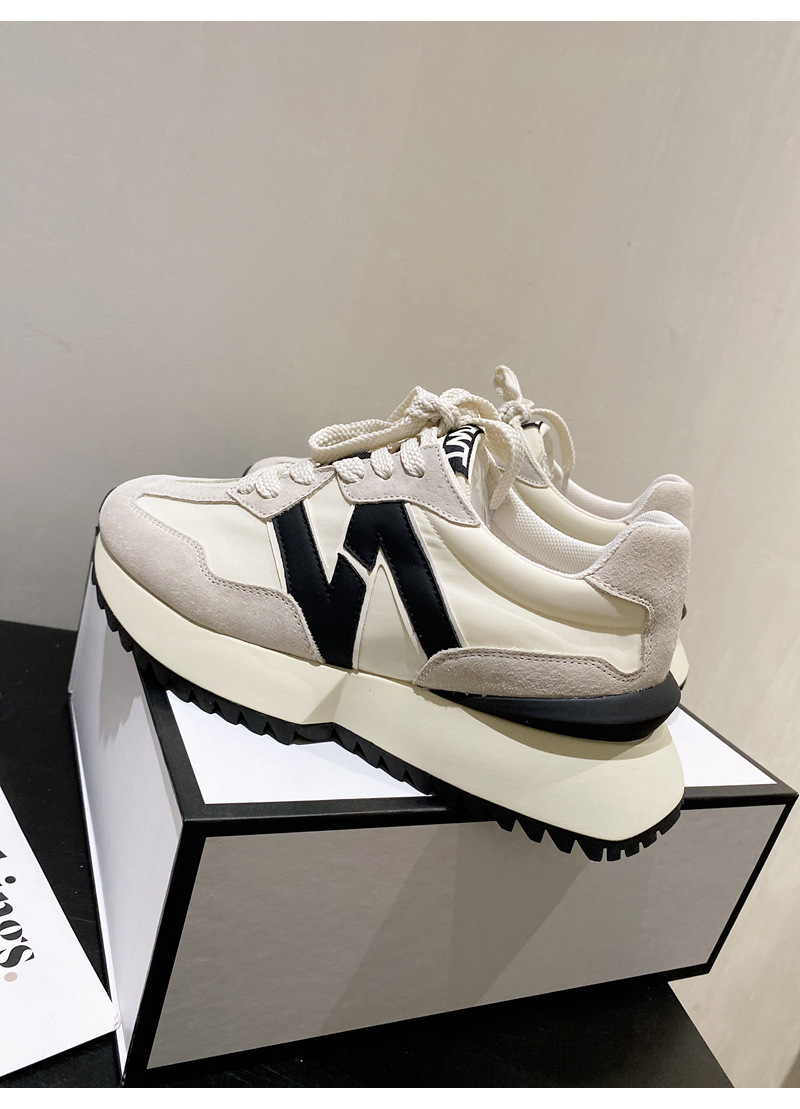 Giày cha thương hiệu hợp thời trang Hàn Quốc Giày da dày đế eo nhỏ của phụ nữ Giày Forrest Gump mùa xuân và mùa thu giày thể thao thông thường có dây buộc phù hợp với tất cả các trận đấu
