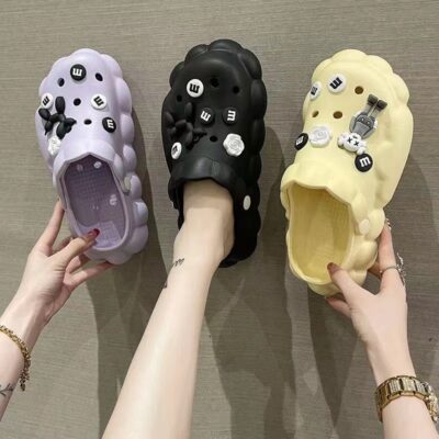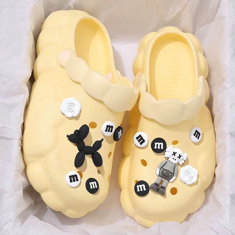 Giày có lỗ đế dày cho nữ mùa hè mới dễ thương đi biển Xăng đan Bao Đầu chống trượt ngoài trời dép đi trong nhà 2 bên