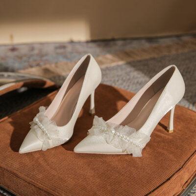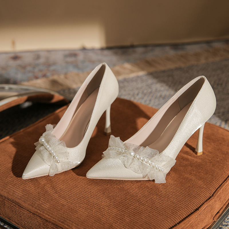 Giày cưới cao cấp mới váy cưới khóa ngọc trai trang trí phù dâu giày sandal cao gót nữ size lớn size nhỏ