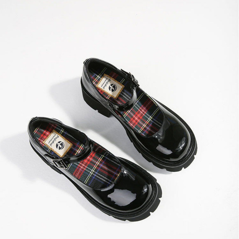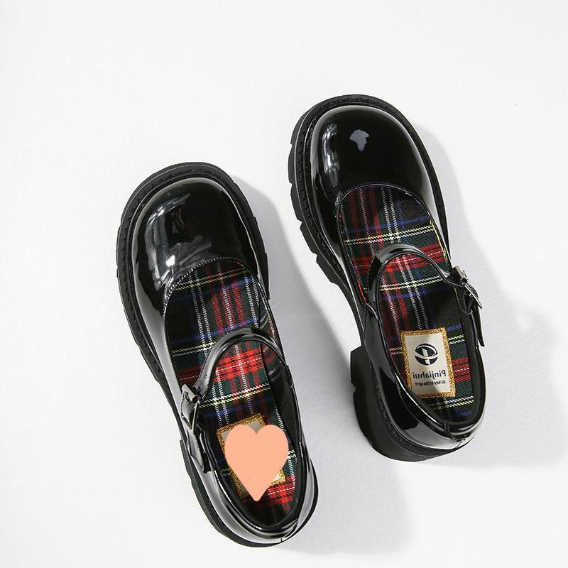 Giày Da Nhỏ Mùa Thu Mới Giày Mary Jane Size Nhỏ Gót Dày Đáy Dày Đại Học Phong Cách Giày Đơn Slim Nữ