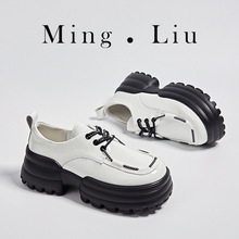| 鞋子女秋季2022新款运动跑步鞋厚底休闲真皮女鞋增高平底老爹鞋女 |