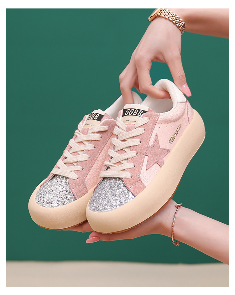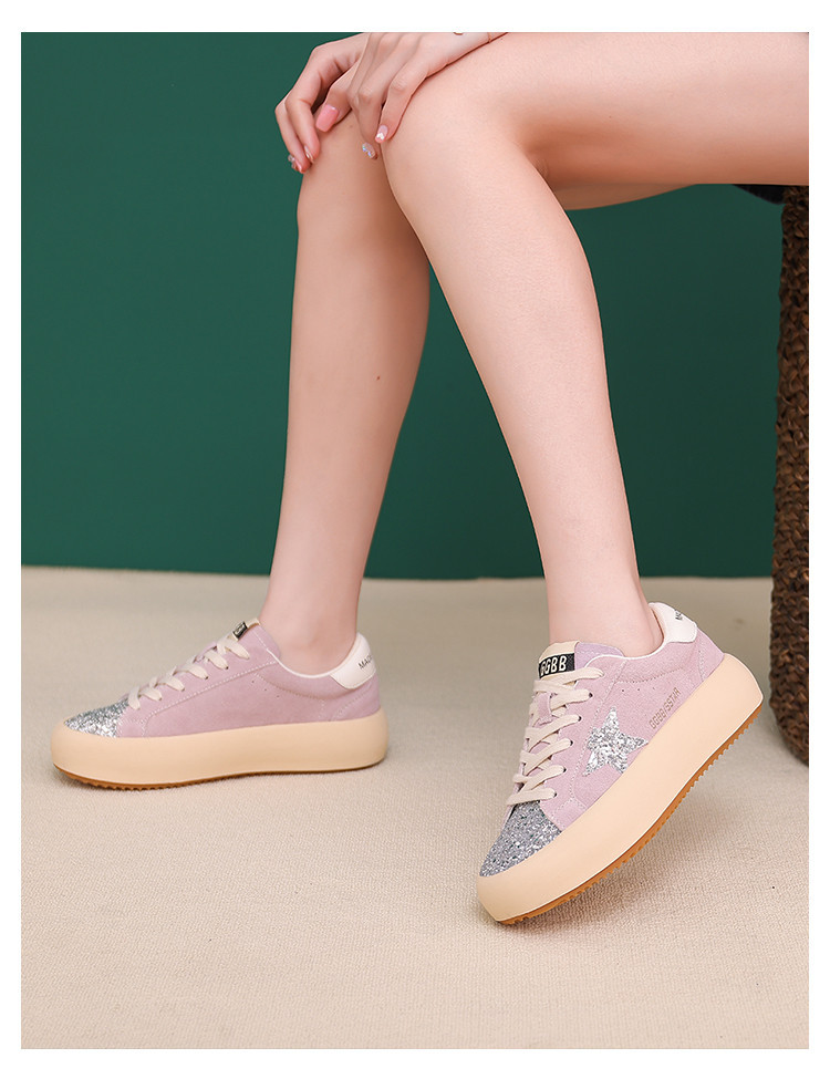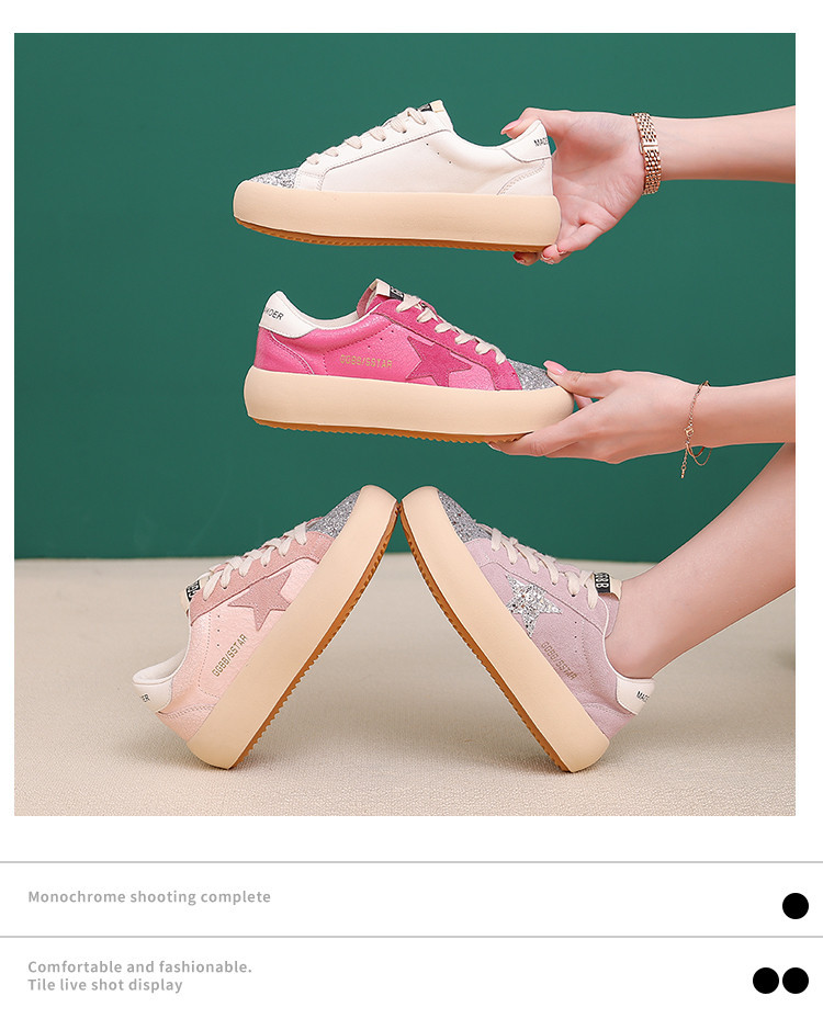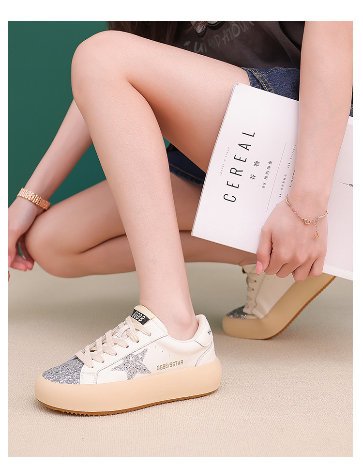 | 吸膜底真皮小白鞋女2023春季新款厚底增高板鞋平底单鞋女运动女鞋 |